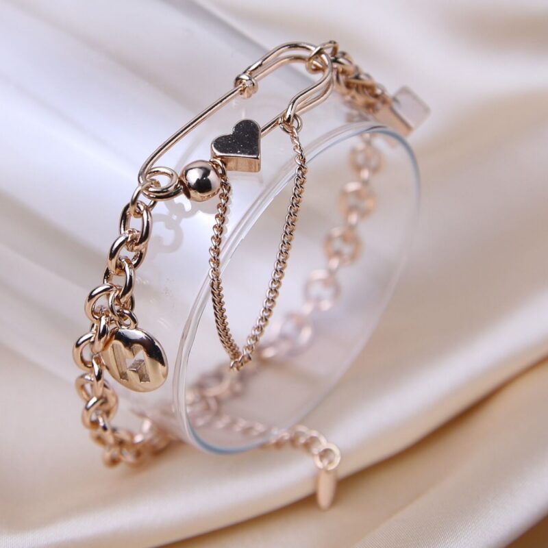Rose Gold Chain Bracelet with Heart and Square Details