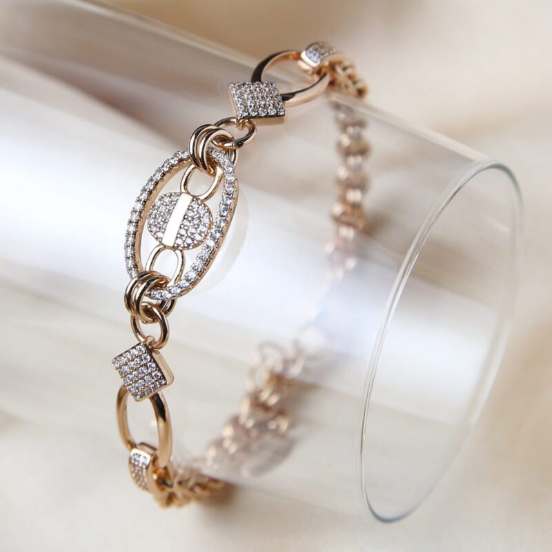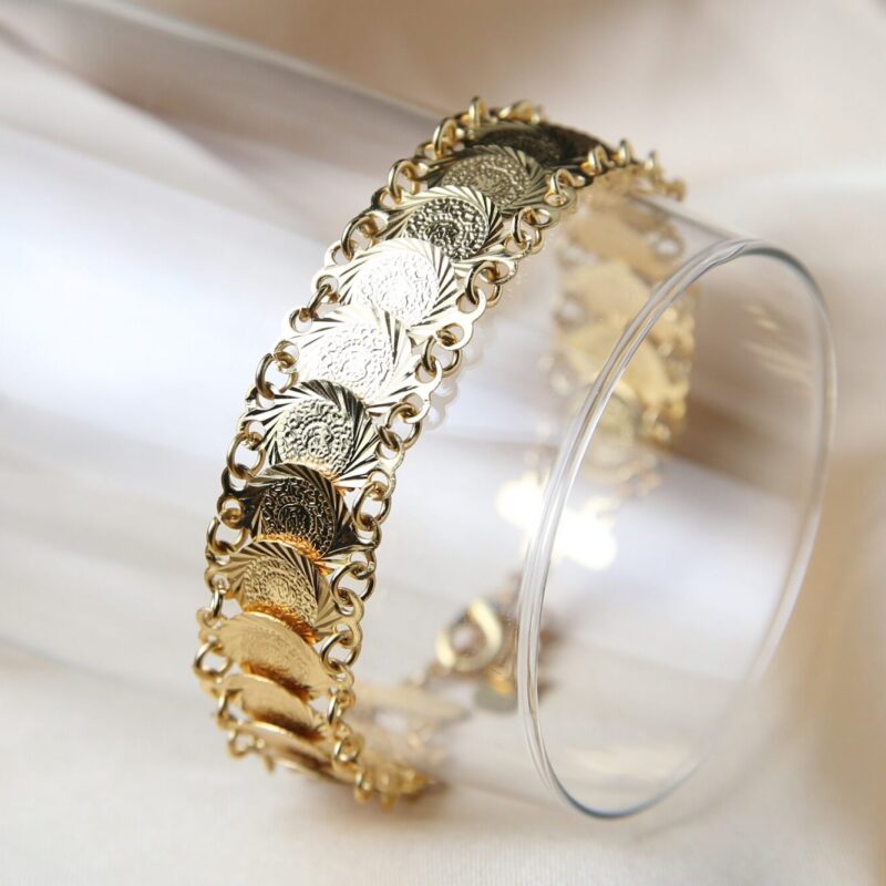 Antique Gold-Plated Bracelet with Elegant Dark Stones