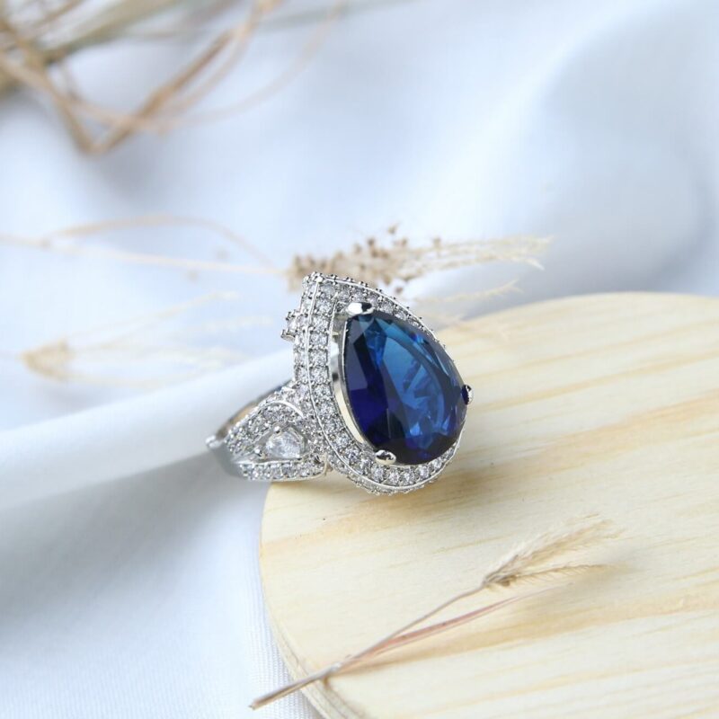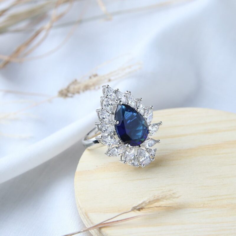 Sapphire Teardrop with Diamond Halo Ring
