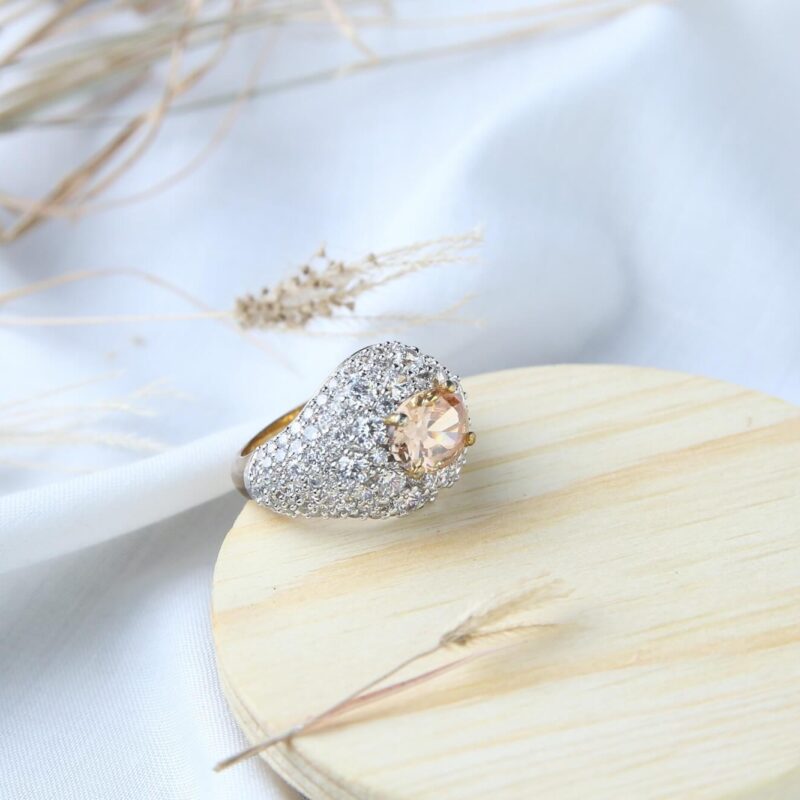 Champagne Center Stone with Pavé Band Ring