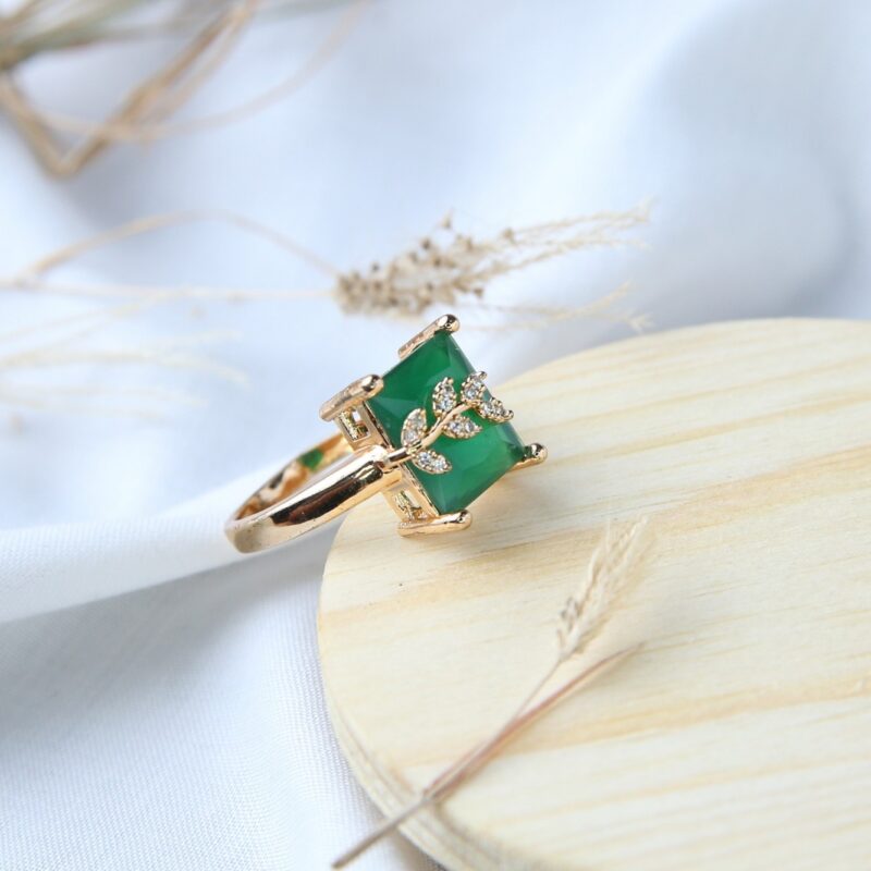 Emerald Square with Leaf Accents