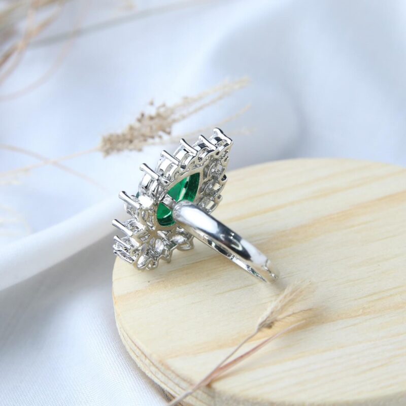 Emerald Diana Halo Ring