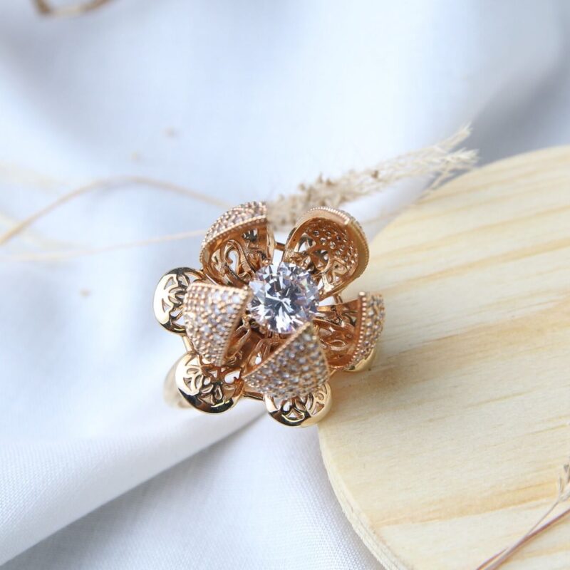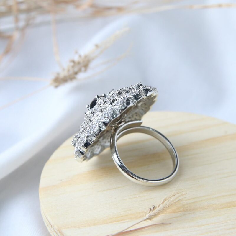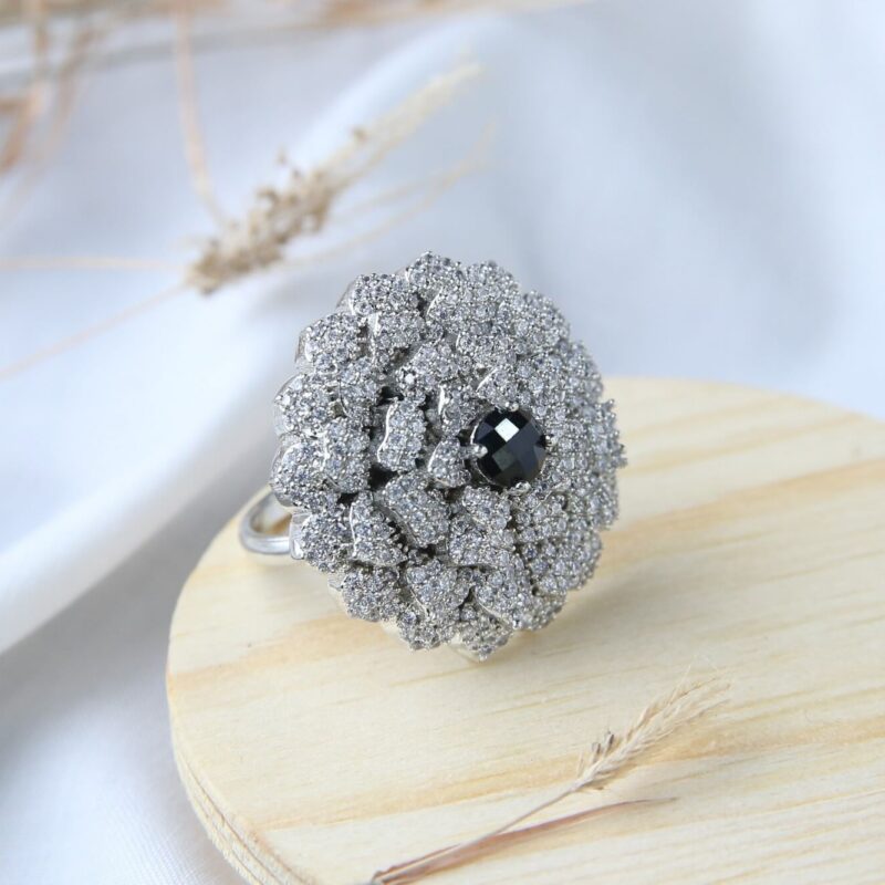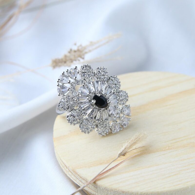 Black Center Floral Cluster Ring