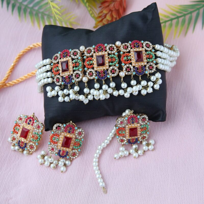 Pearl and Gemstone Jadau Choker Set