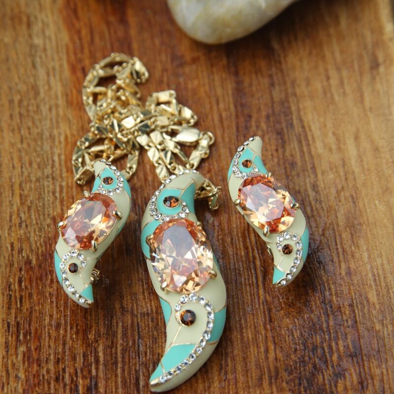 Elegant Teal and Amber Crescent Jewelry Set