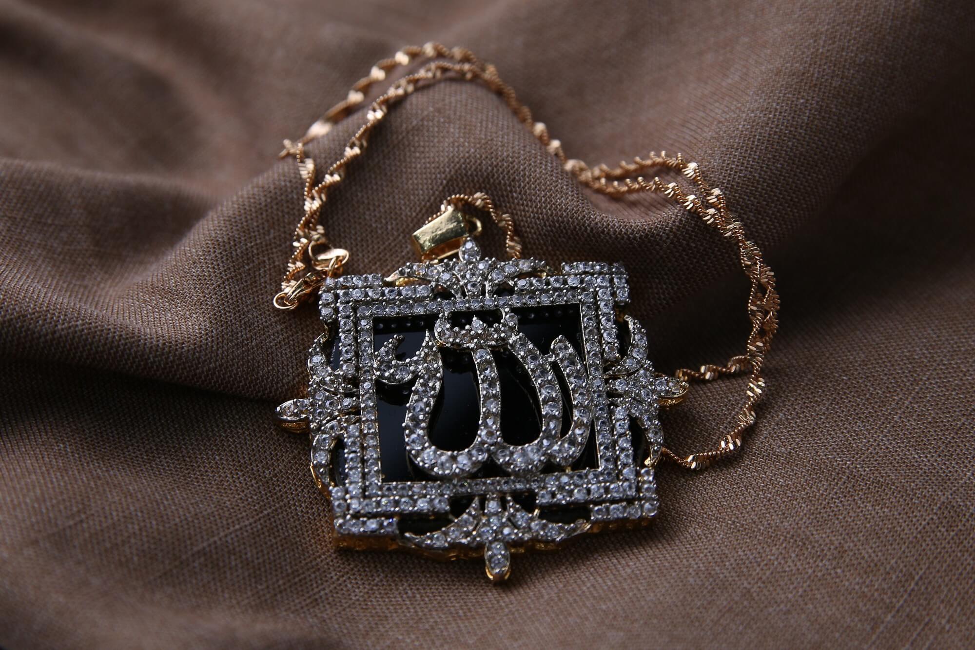 This sophisticated gold pendant has a stunning calligraphic inscription that reads “Allah” encircled by glittering diamonds. Because of its timeless and modern design, it’s a piece that works well for many settings and occasions. For someone who respects their faith and enjoys beautiful jewelry, it is the ideal present.