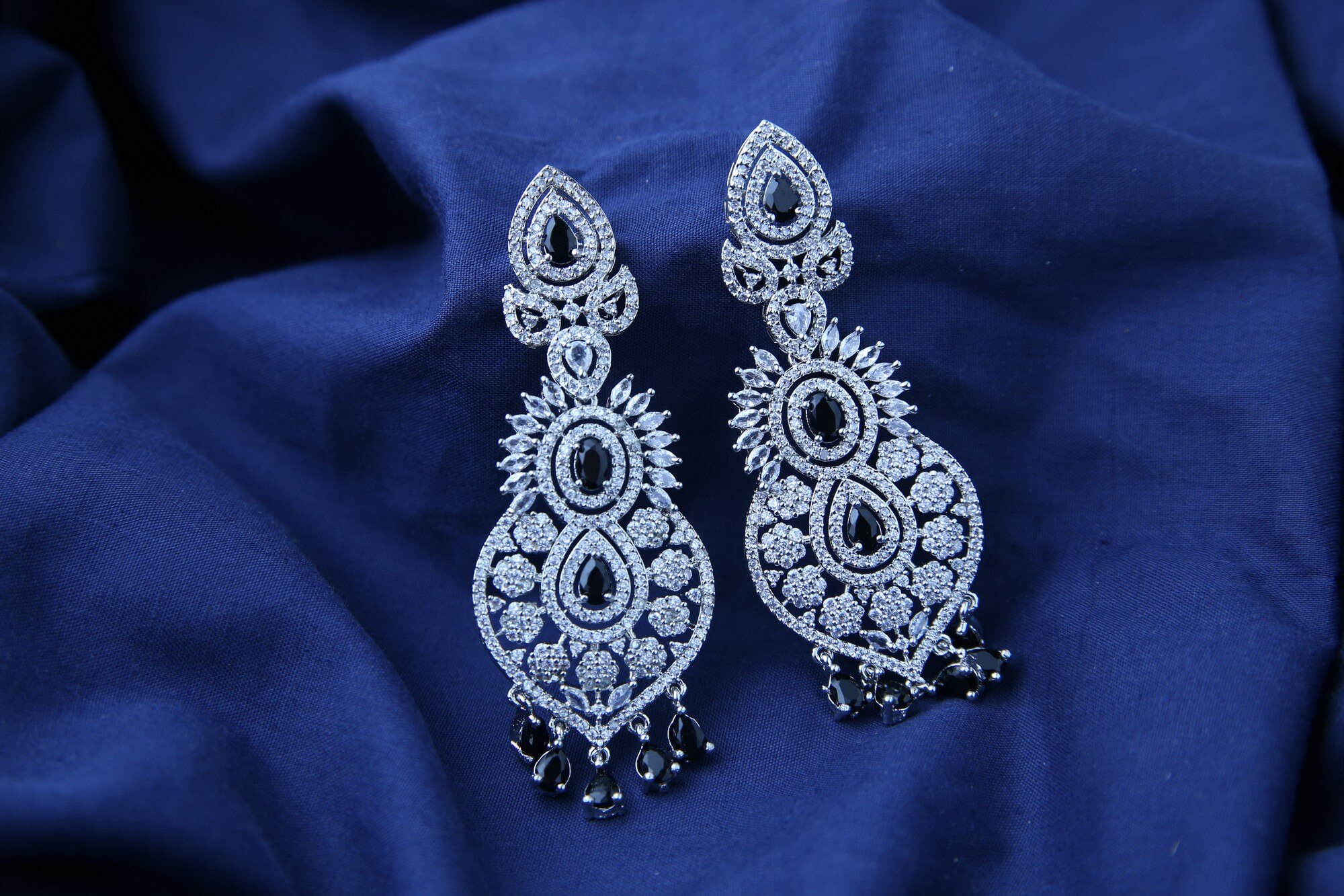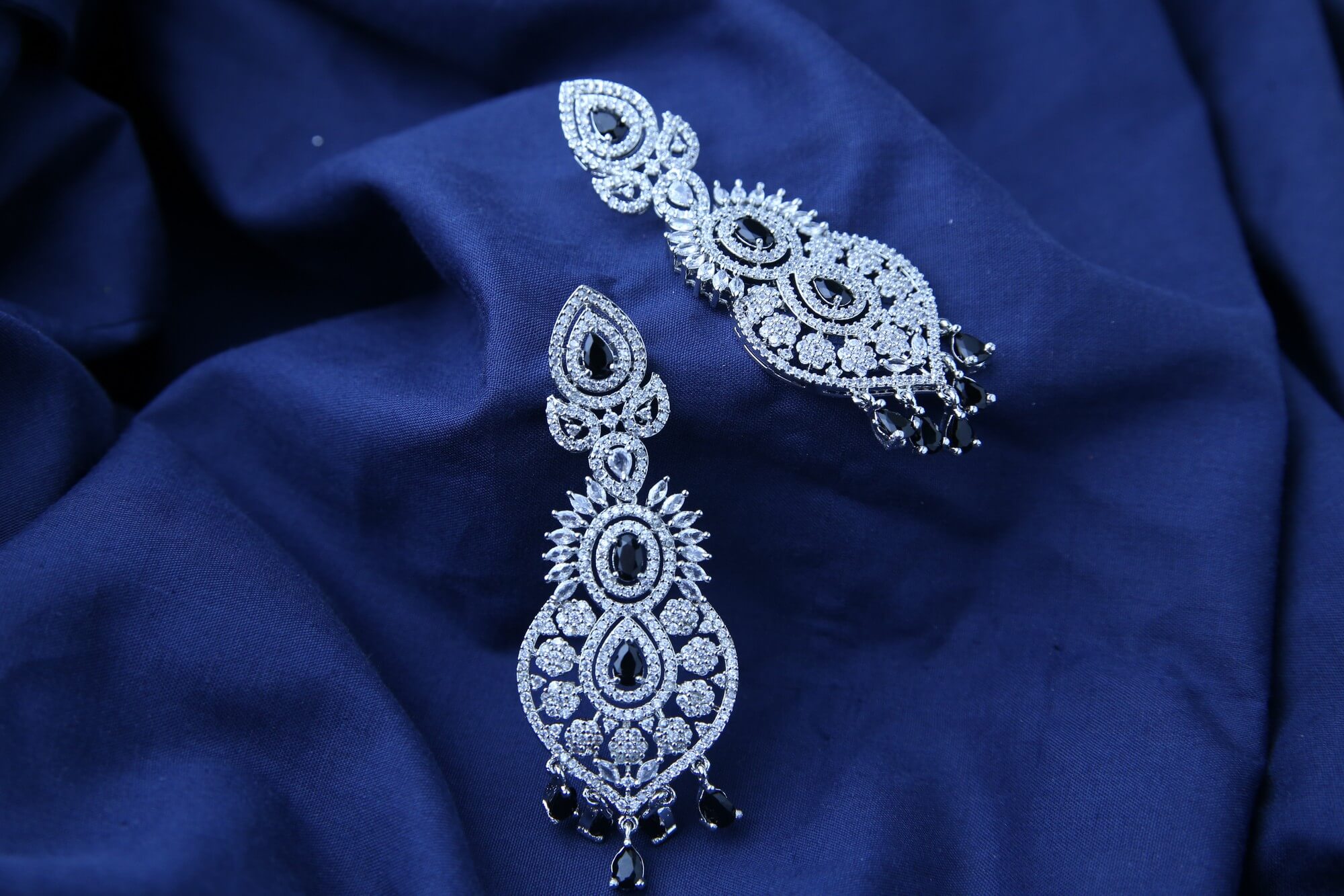 Make a statement with these captivating Onyx Dream Drop Earrings. A delicate tracery of sparkling clear crystals forms an elegant, elongated silhouette, while deep black onyx stones add a touch of rich color and captivating depth. The cascading design dangles gracefully, catching the light and adding a touch of movement to your every turn. Perfect for special occasions, these earrings effortlessly blend classic glamour with modern sophistication.