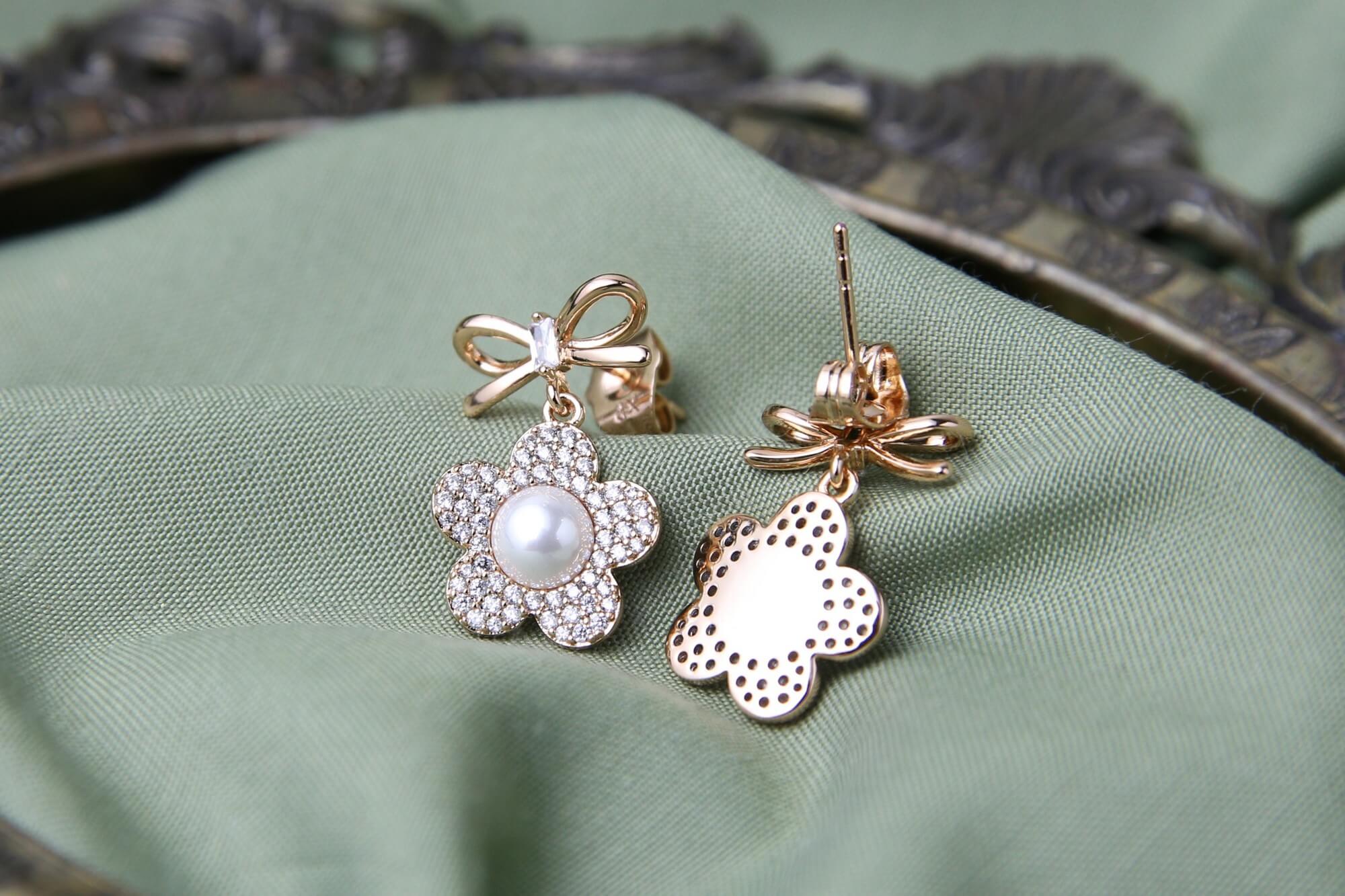 Bow Pearl Blossom Earrings