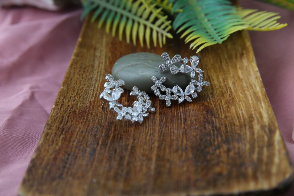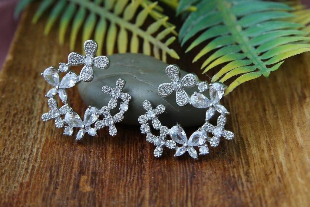 Add a touch of elegance to your jewelry collection with our Brilliant Floral Statement Earrings. These earrings, made from a magnificent arrangement of glittering crystals, have delicate flower designs that gently cascade, providing an eye-catching impression. The meticulous craftsmanship ensures that each piece captures light brilliantly, making it suitable for both formal and special occasions. These earrings are lightweight and comfy, with a secure fit that lets you shine with confidence. Make a bold statement and let your style bloom with these gorgeous floral earrings.