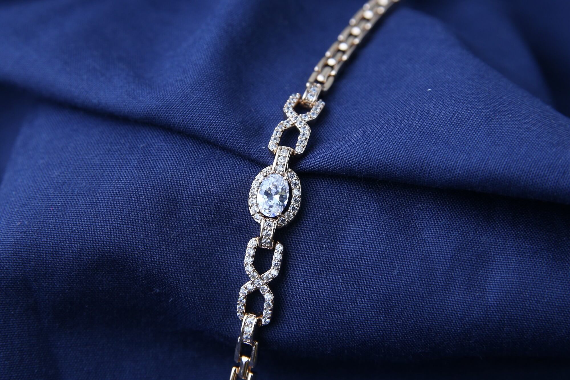 A radiant centerpiece takes focus in the Celestial Orbit Bracelet. A shimmering solitaire crystal is nestled within a halo of sparkling pavé, all set upon a delicate sturdy chain. This bracelet adds a touch of understated elegance to any occasion.