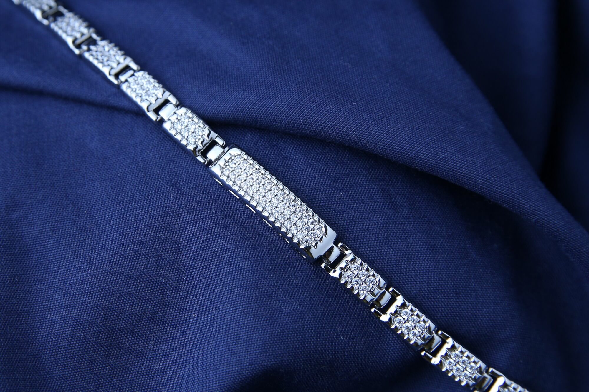 Surprise someone special or yourself with the Celestial Shimmer Link Bracelet. This beautifully crafted piece features a delicate chain of interlinked rectangles, each sparkling with a line of dazzling simulated diamonds. A thoughtful gift for any occasion, this bracelet adds a touch of timeless elegance to any jewelry collection. The Celestial Shimmer Link Bracelet is a treasure t o be cherished.