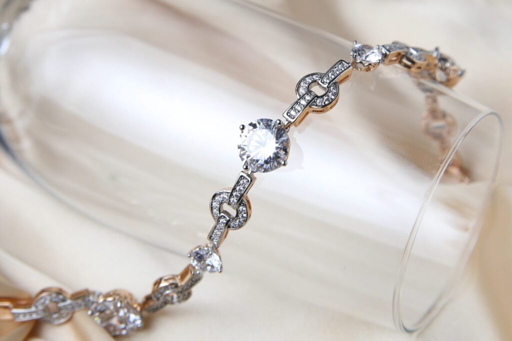 Elevate your ensemble with this exquisite diamond link bracelet, designed to bring sophistication and timeless beauty to any occasion. This bracelet features a delicate chain of intricately designed links adorned with sparkling diamonds. The combination of bold circular and rectangular elements, set with dazzling stones, adds a modern yet classic appeal. The centerpiece of this stunning bracelet is its brilliant-cut diamonds, which catch the light beautifully, creating a radiant glow with every movement. Whether worn alone or paired with other accessories for an elegant layered look, this bracelet is the perfect addition to any jewelry collection.