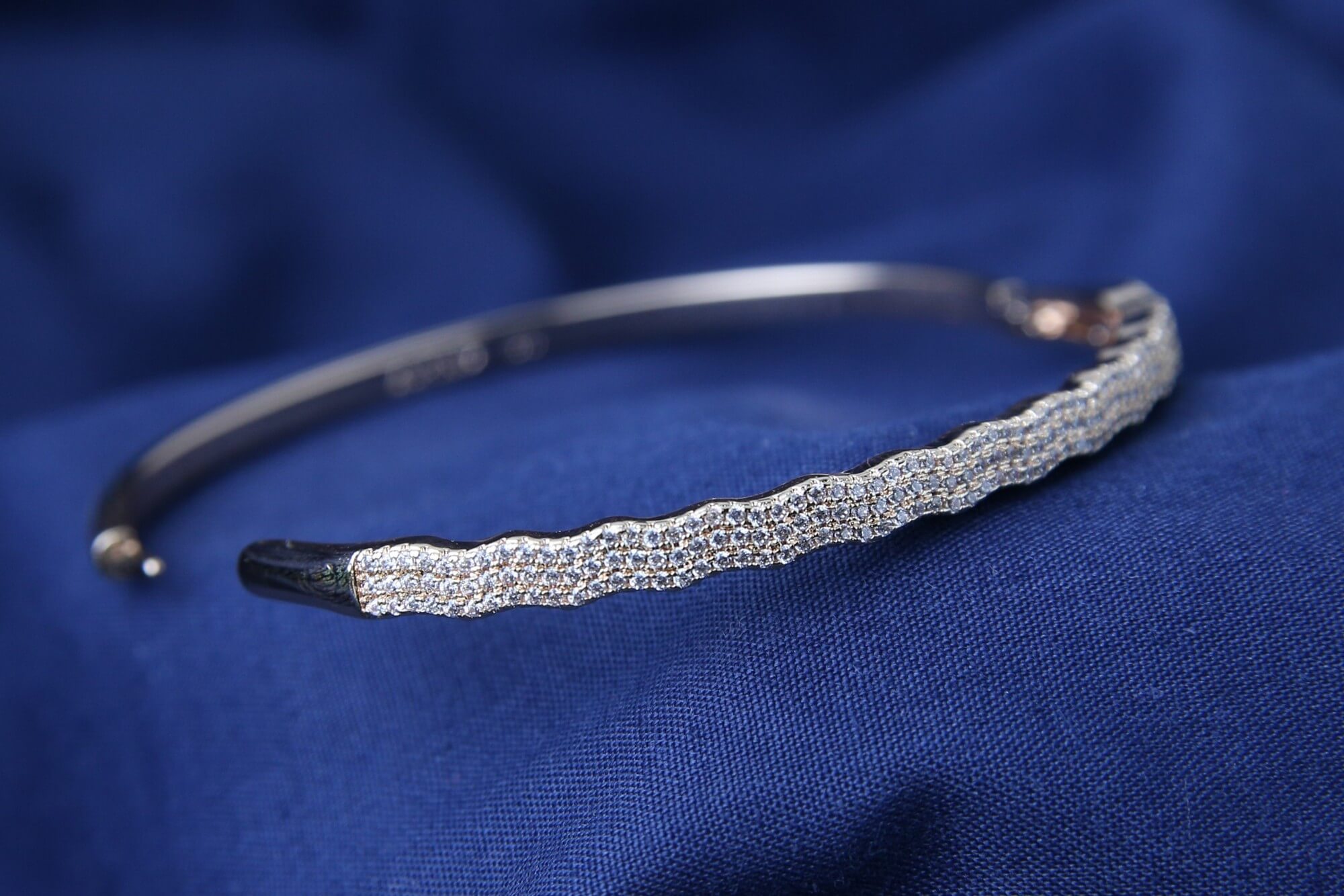 Catch the light and turn heads with the Diamond Wave Cuff ! This mesmerizing open cuff features a unique, undulating design, entirely paved with glittering stones. It’s a modern twist on classic elegance, perfect for adding a touch of edgy glamour to any look. A unique, contoured shape that adds a touch of artistic flair. The Diamond Wave Cuff arrives in a beautiful gift box, ready to make a lasting impression.