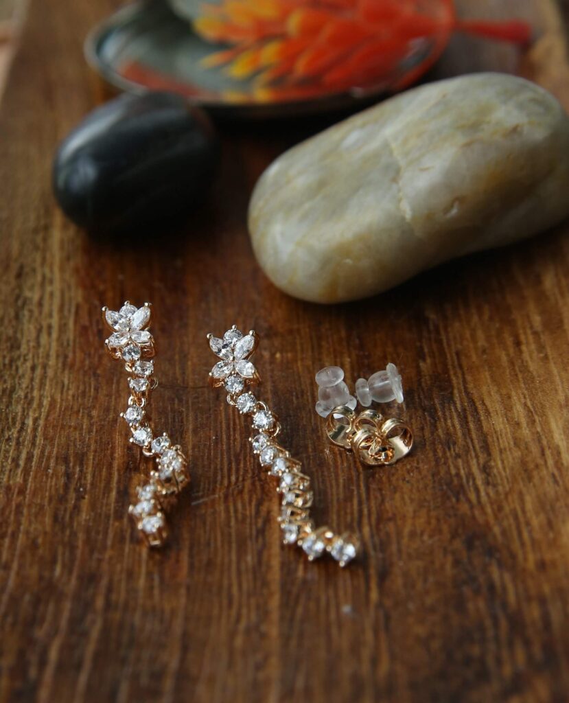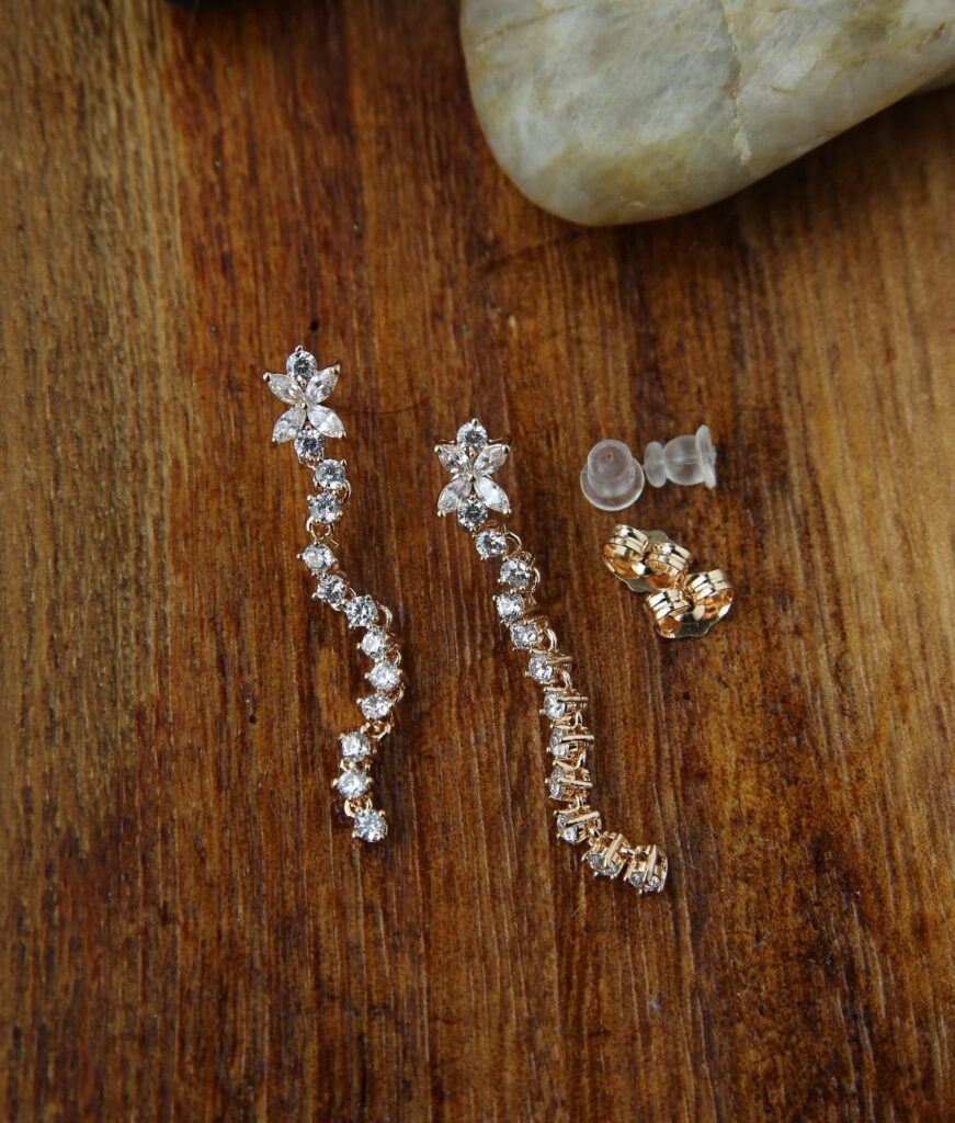 Elegant Floral Earrings will elevate your style. These earrings, with their magnificent design that flawlessly mixes sparkling crystals and delicate floral details, are ideal for adding a touch of elegance to any ensemble. The distinctive twisting form captures light from all angles, guaranteeing you stand out at any event. They are made of high-quality materials and offer long-lasting wear while being lightweight for comfort. Whether you’re getting ready for a night out or adding flair to your everyday outfit, these earrings are a timeless addition to your jewelry collection.