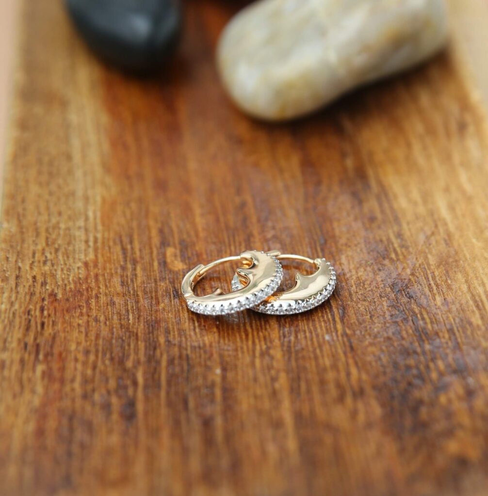 Add to your jewelry collection with these Elegant Gold and Crystal Mini Hoop Earrings. These lovely hoops have a refined design and are embellished with sparkling crystals that catch the light brilliantly. Crafted from high-quality gold-tone metal, their timeless design makes them suitable for both everyday and extraordinary occasions. The lightweight construction ensures comfort and allows you to show off your style all day. These small hoop earrings, which strike a delicate balance between simplicity and glitter, lend a touch of glamor to every outfit. Enhance your outfit with this must-have accessory!