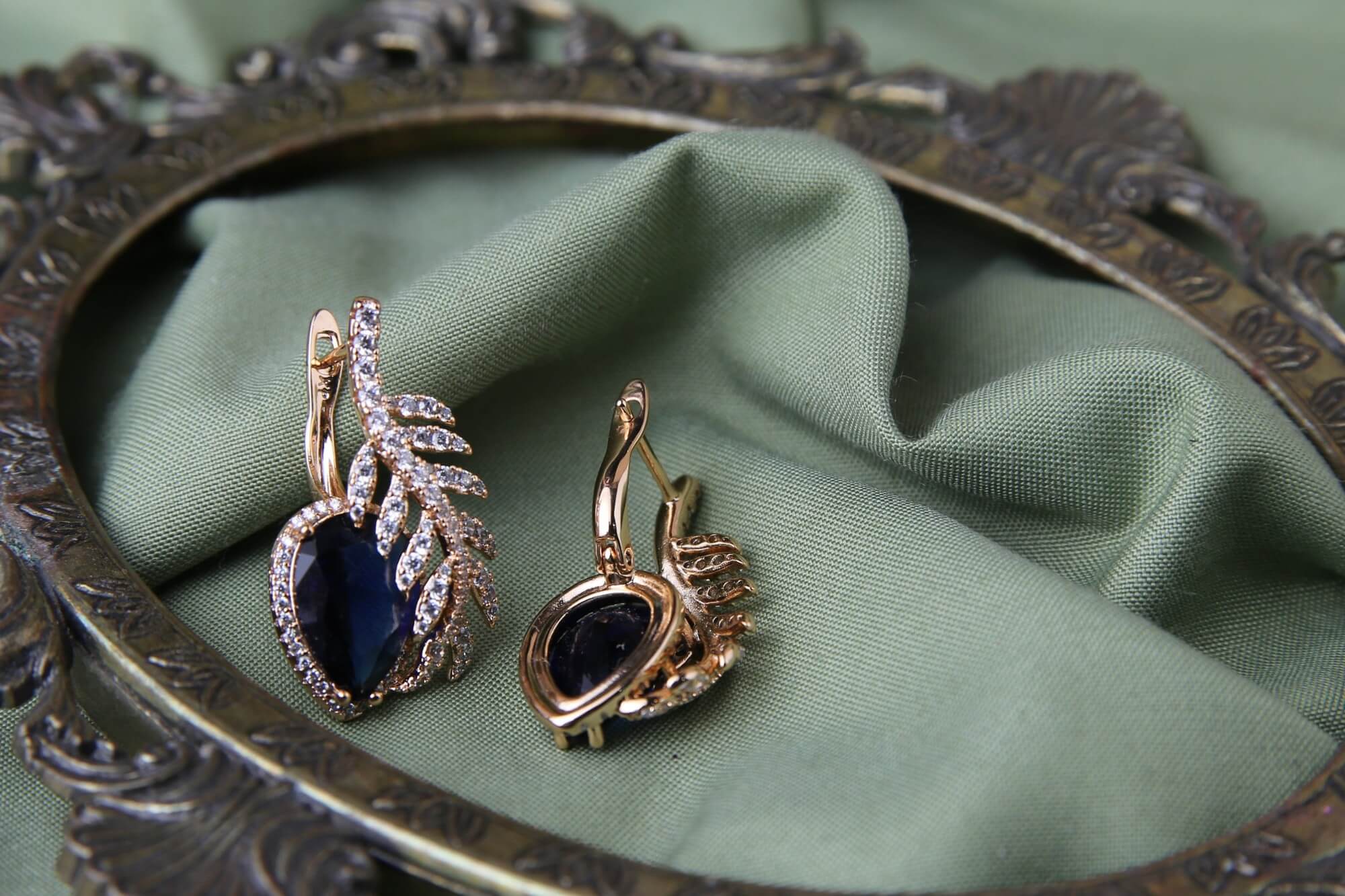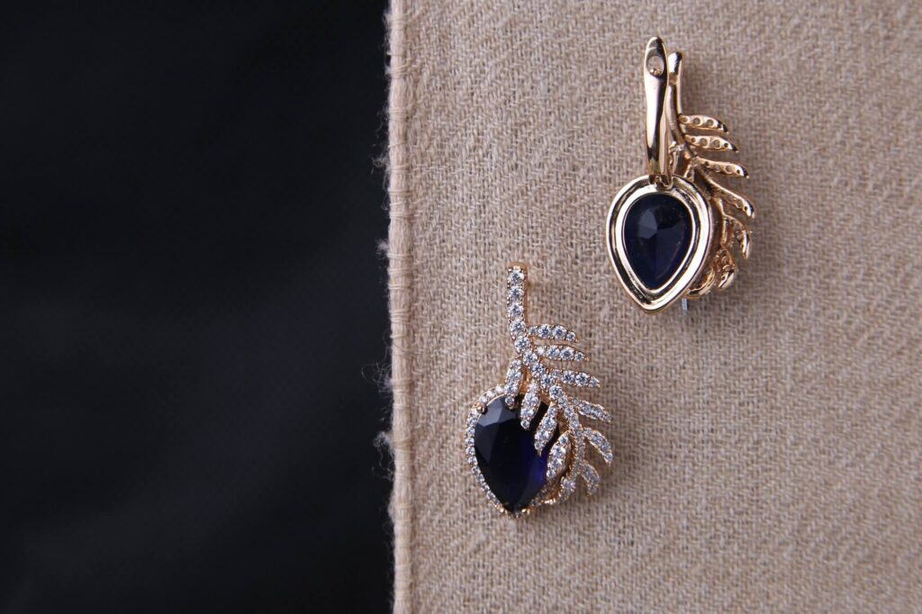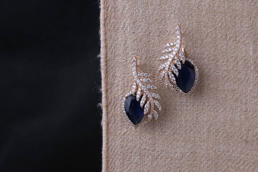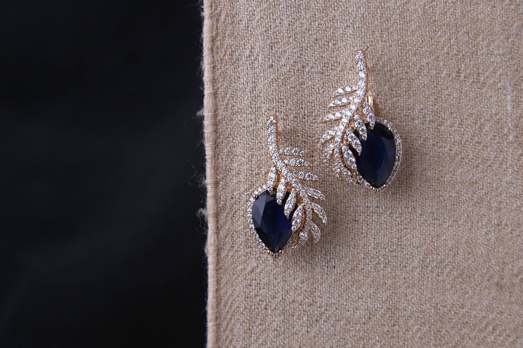 Elegant Sapphire and Diamond Leaf Earrings