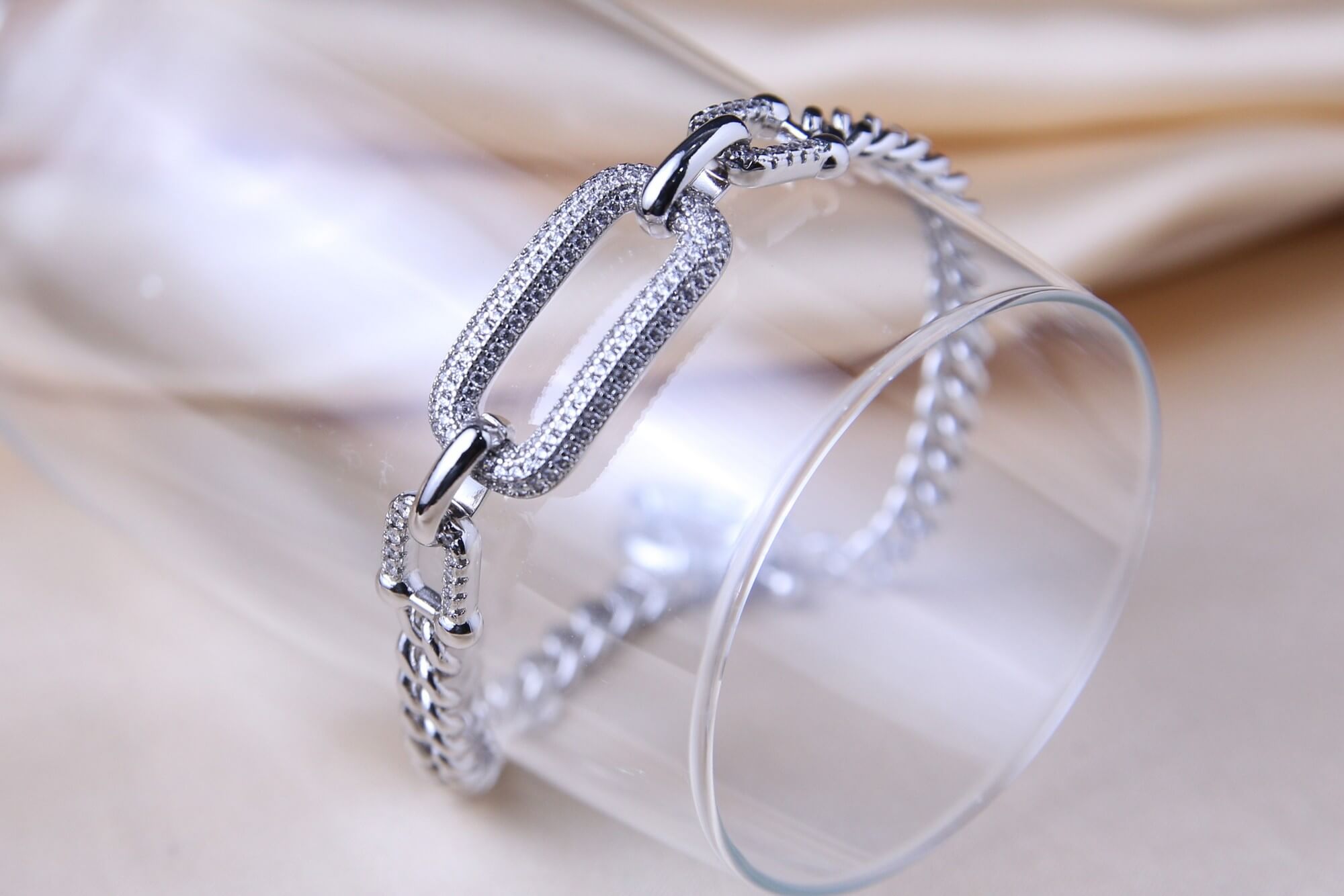 Elegant Silver-Toned Bracelet with Rectangular Detail