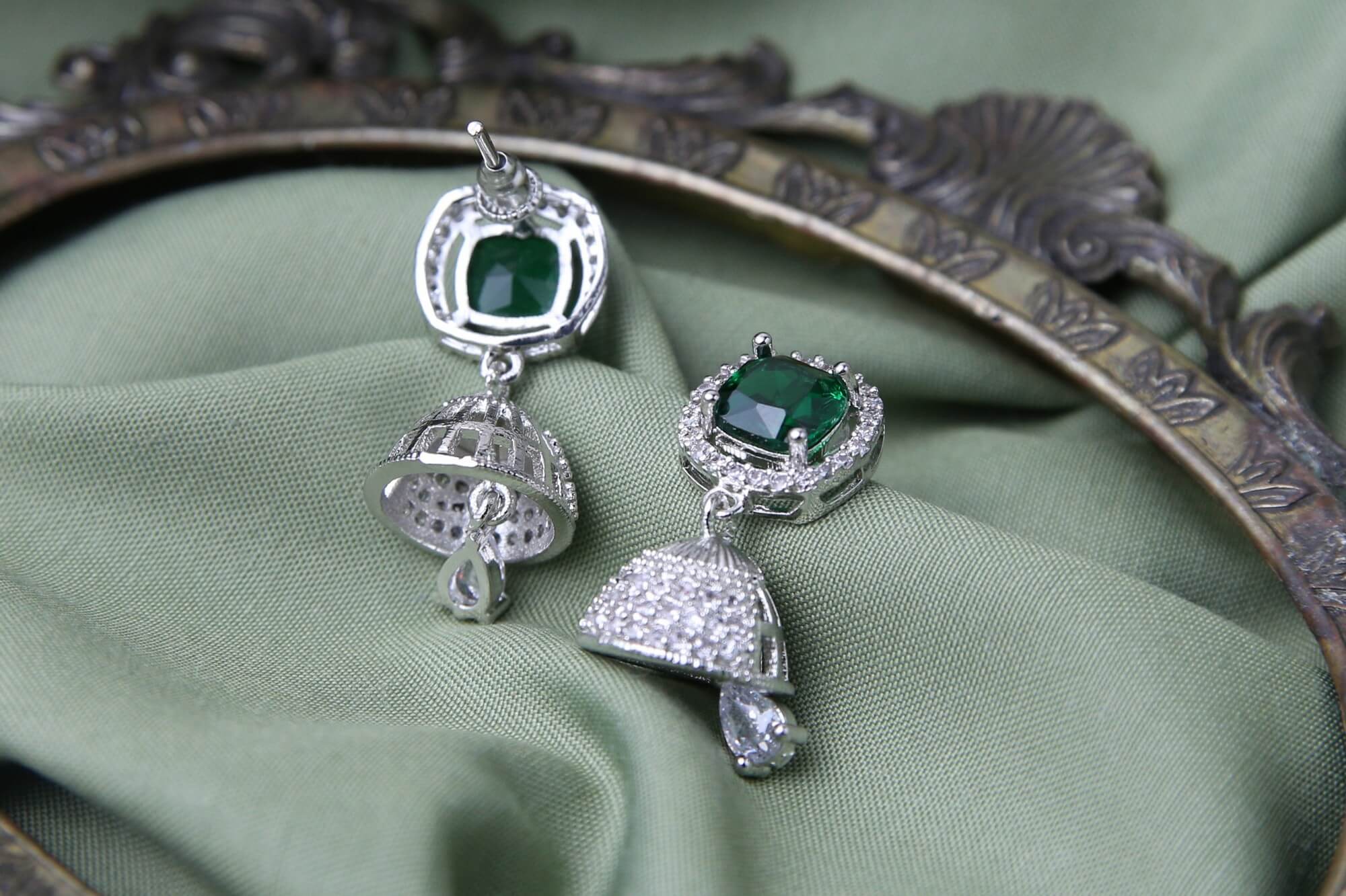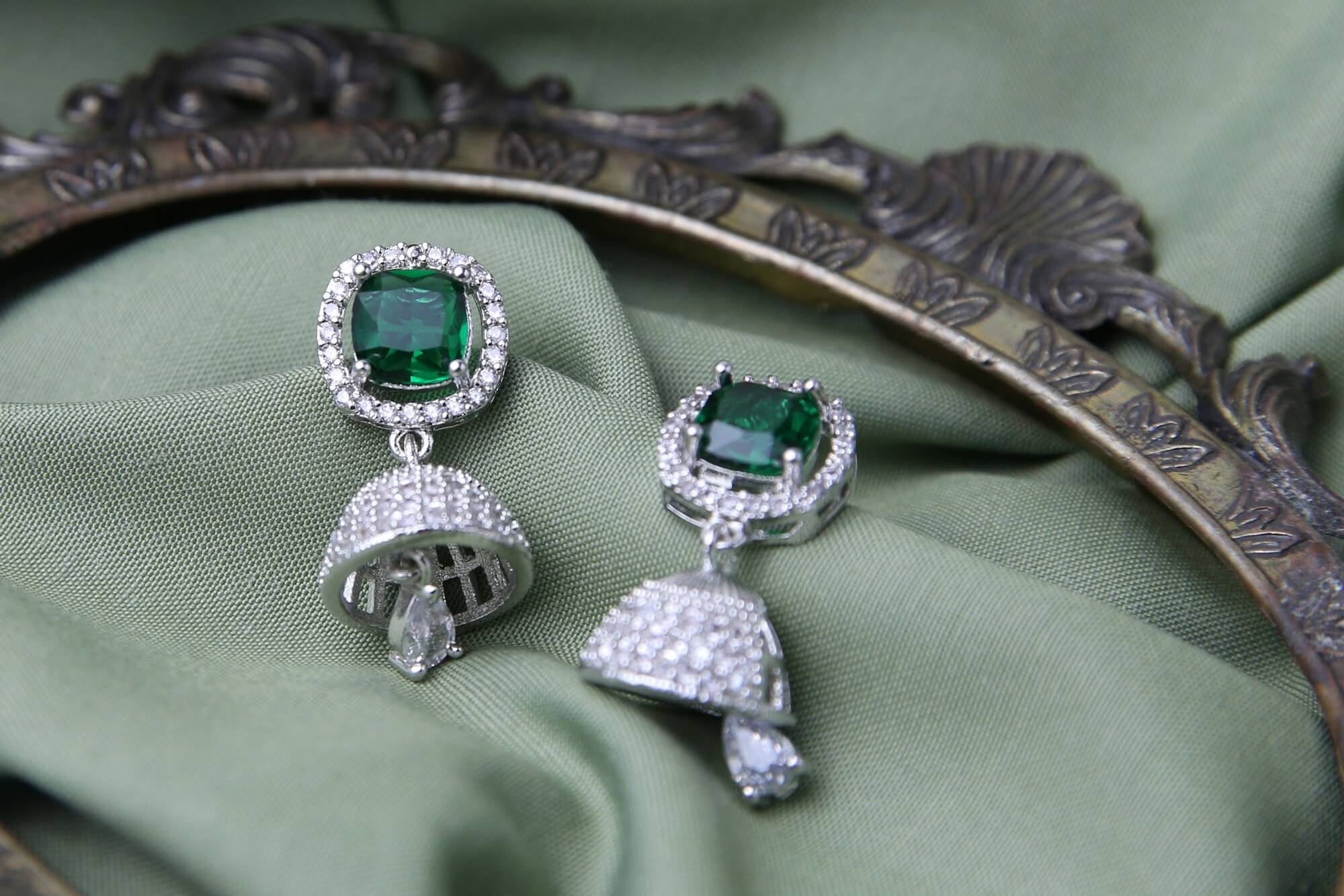 Emerald Cascade Jhumka Earrings