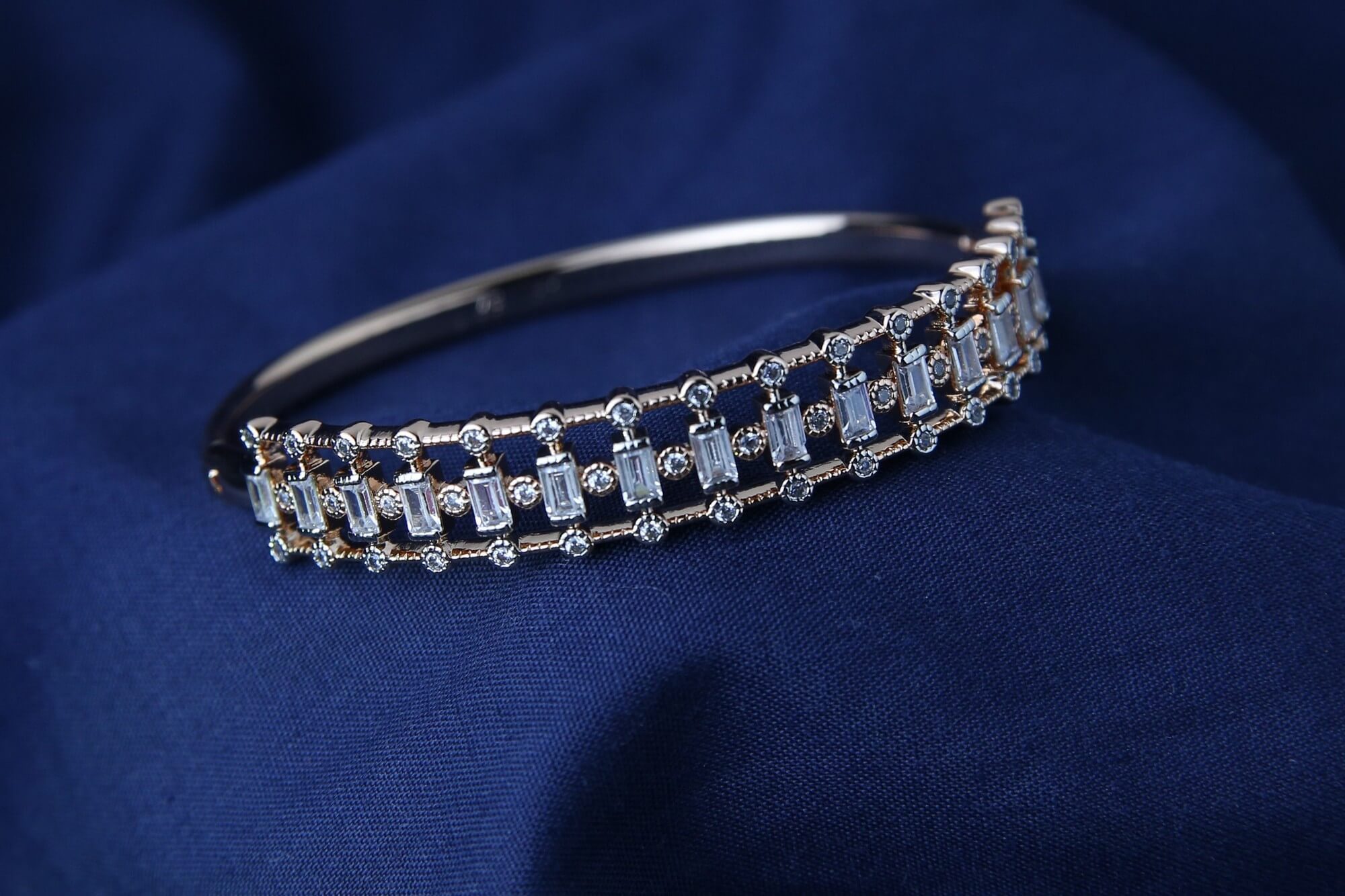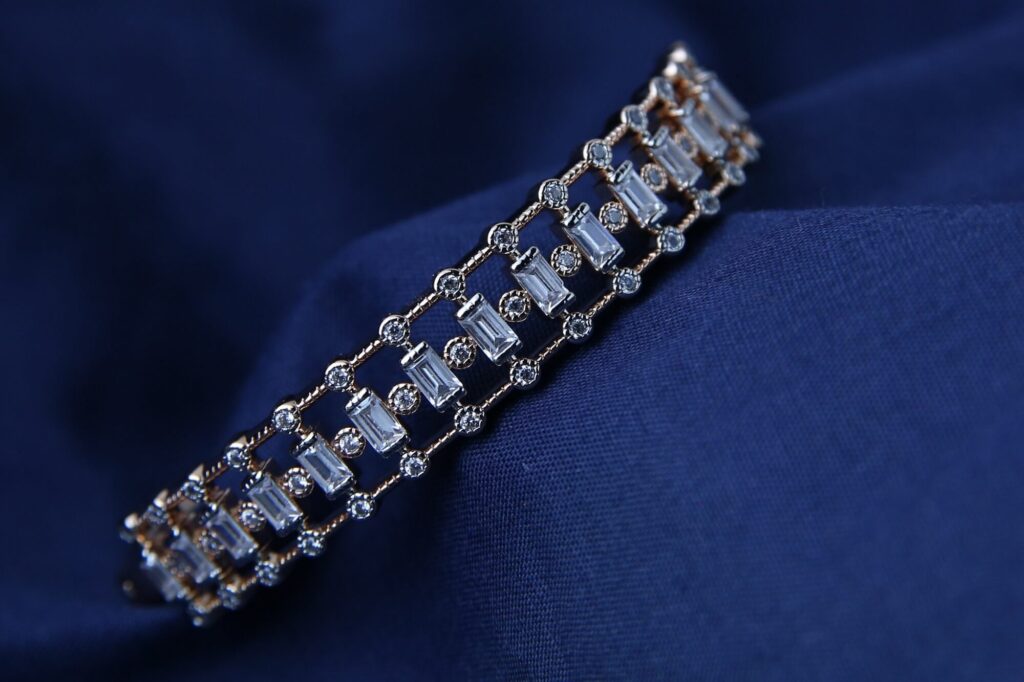 The Emerald-Cut Eternity Bangle combines traditional elegance with modern sophistication. The emerald-cut stones in this elegant bracelet are precisely positioned to form a continuous belt of brilliance. It is a classic piece that epitomizes sophisticated style. A continuous row of stones symbolizes everlasting beauty. Each stone is meticulously set for long-lasting wear. Complements the sleekness of the stones.