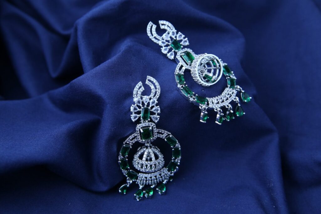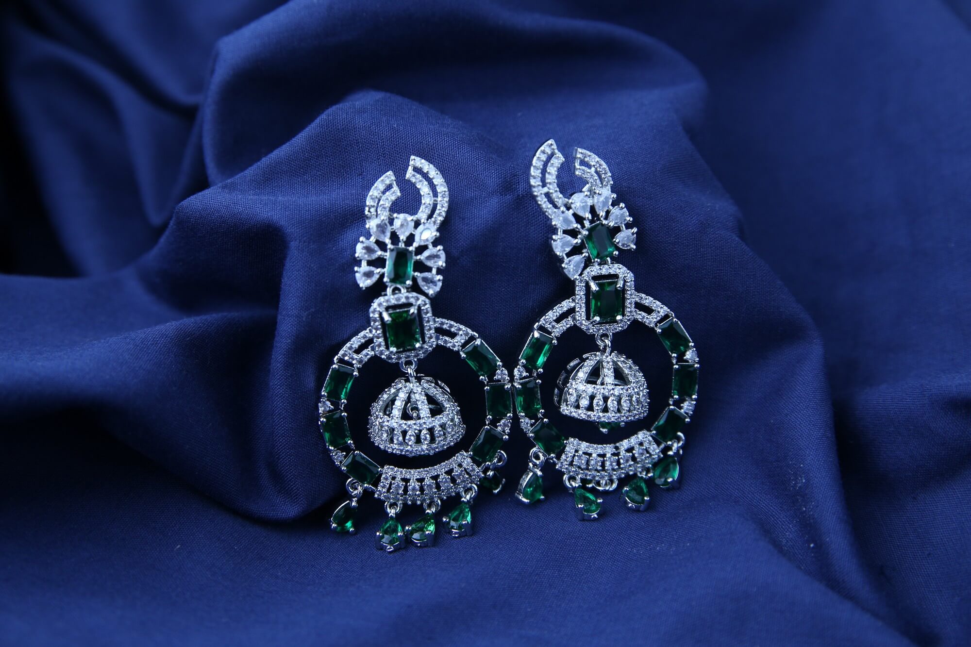 Enchant with emerald elegance in these captivating chandelier earrings. A mesmerizing combination of sparkling clear crystals and rich emerald-toned green stones creates a look of timeless glamour. The intricate design, with its cascading layers and delicate details, evokes a sense of regal sophistication. The chandelier style dangles gracefully, adding movement and drama to your every turn. Perfect for making a statement at special events, these earrings are the epitome of refined style.