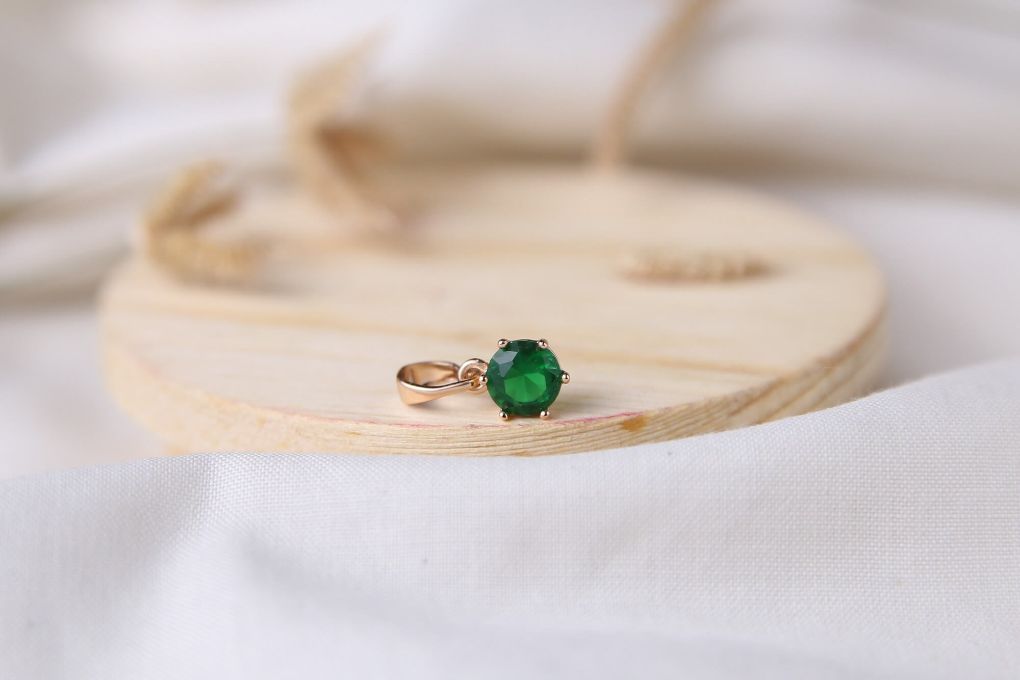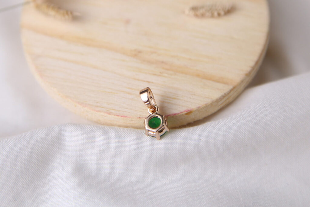 Embrace understated luxury with this timeless solitaire pendant, featuring a vibrant, round-cut emerald green stone. The deep, rich color of the centerpiece is highlighted ensuring the gem catches and reflects light beautifully from every angle. Crafted with a warm rose gold-tone finish, this piece offers a sophisticated contrast between the bold green hue and the soft, polished metal. Its minimalist design makes it an exceptionally versatile accessory, perfect for adding a refined touch of color to a simple daily outfit or serving as an elegant finishing touch for a formal evening look.