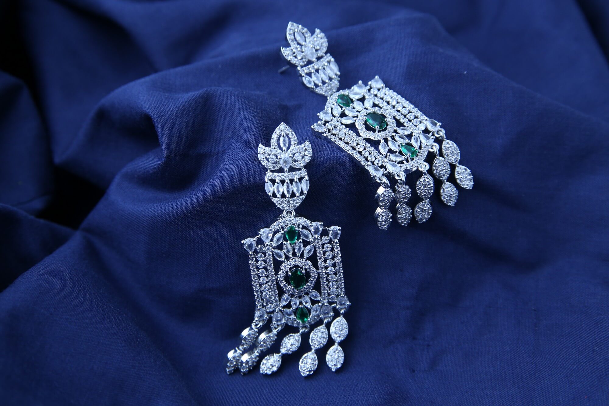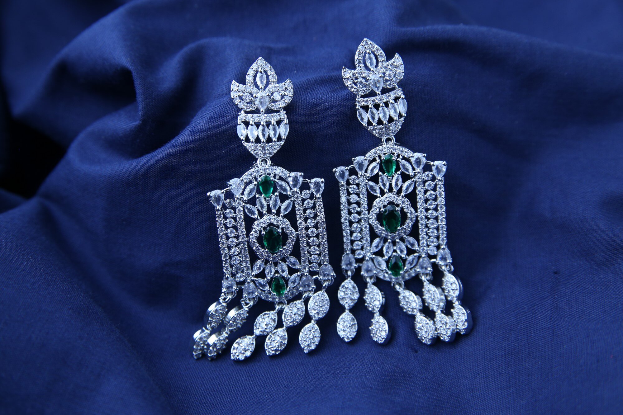 Emerald Majesty & Zircon Statement Earrings