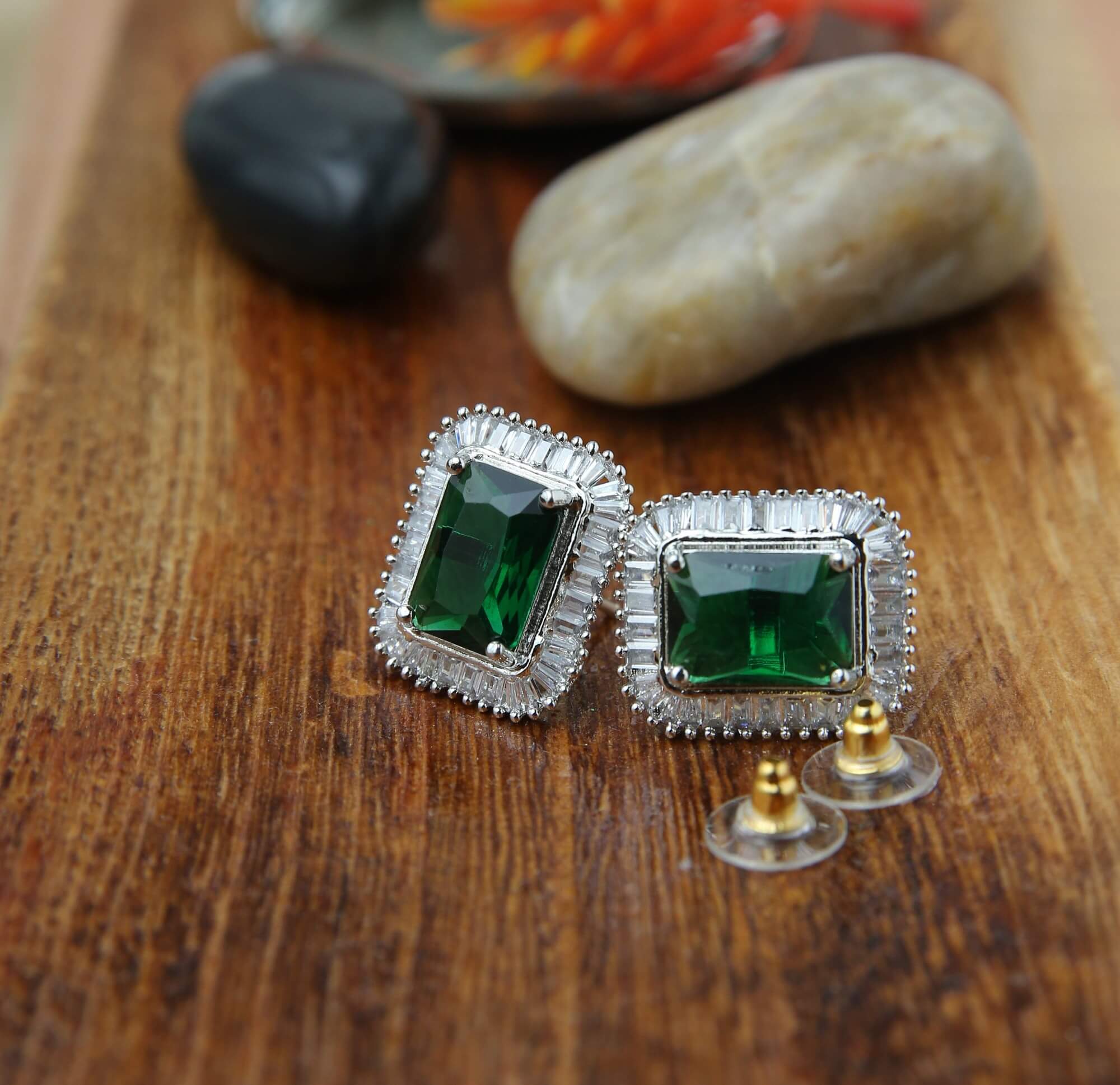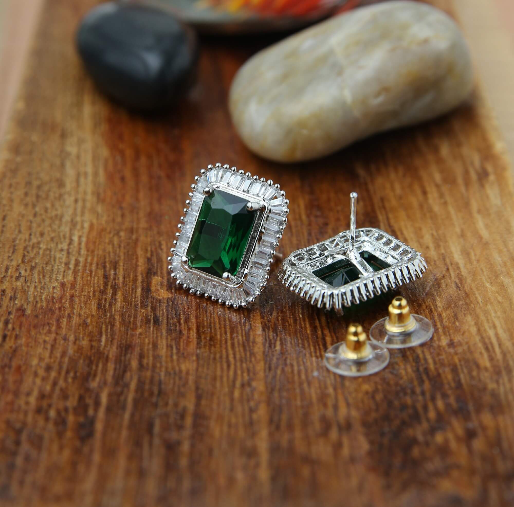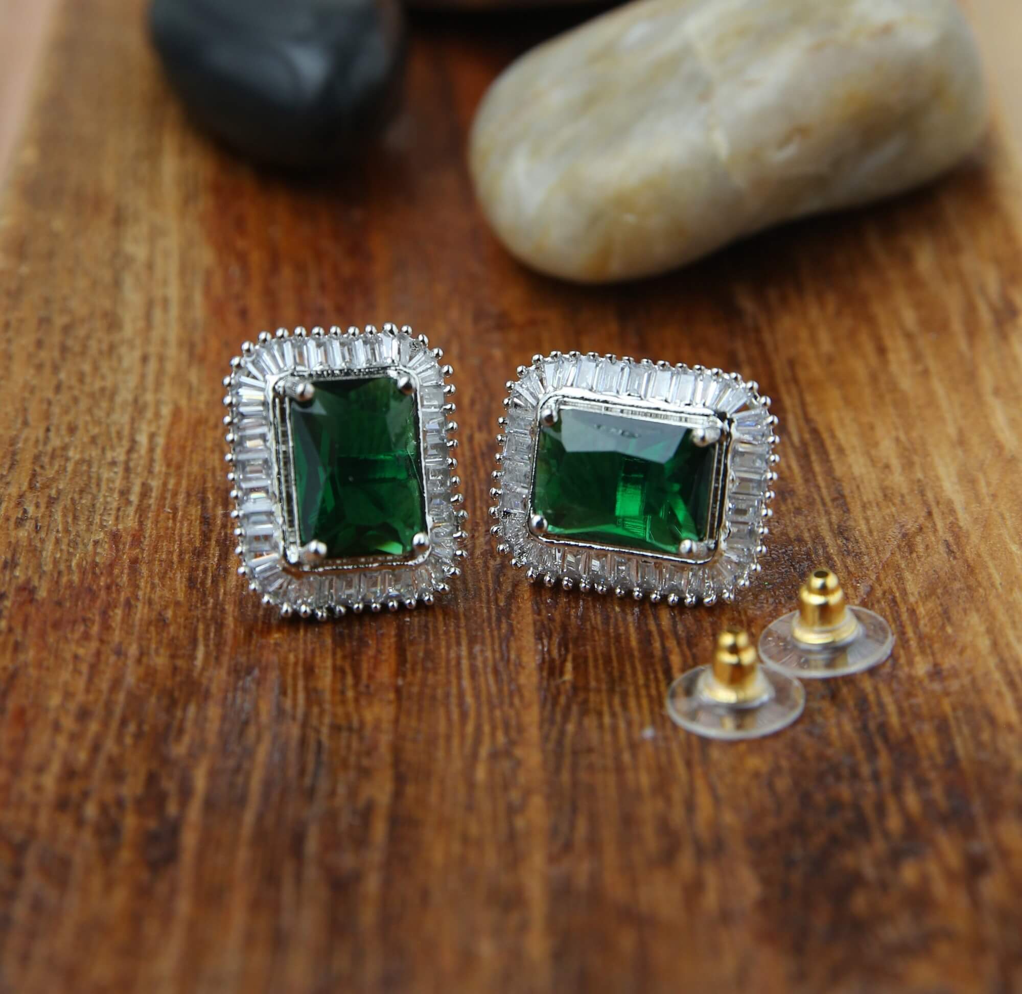 Emerald Square Stud Earrings