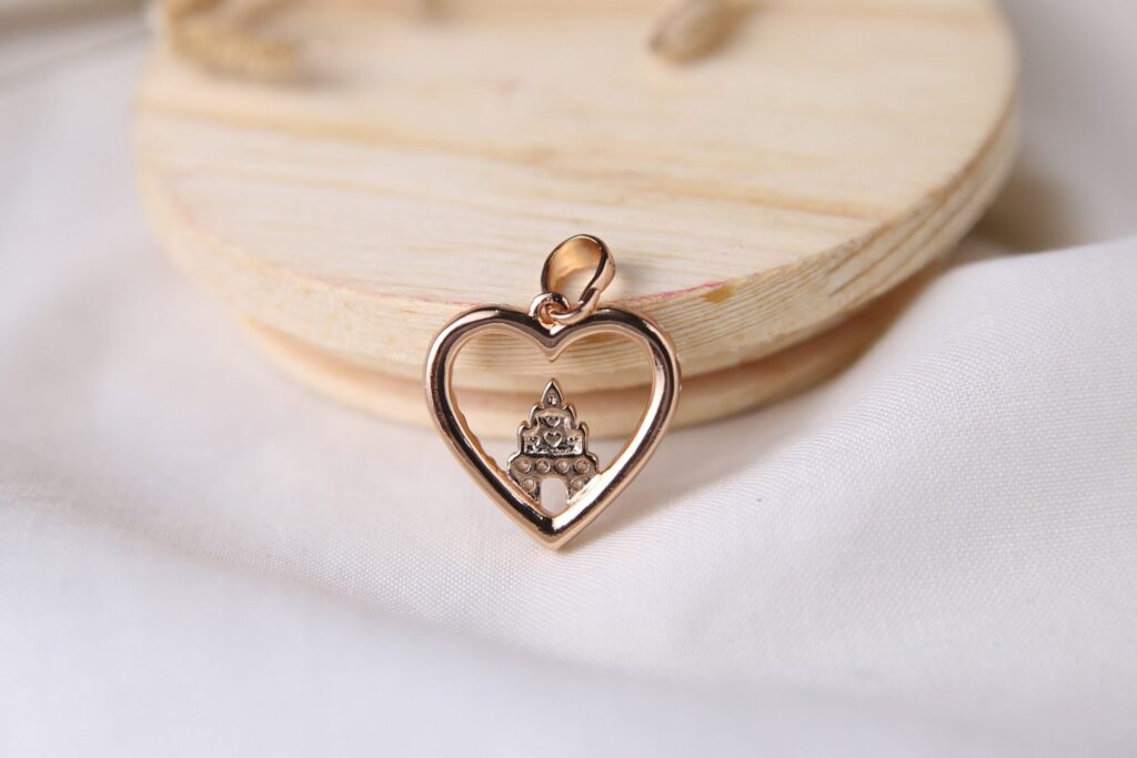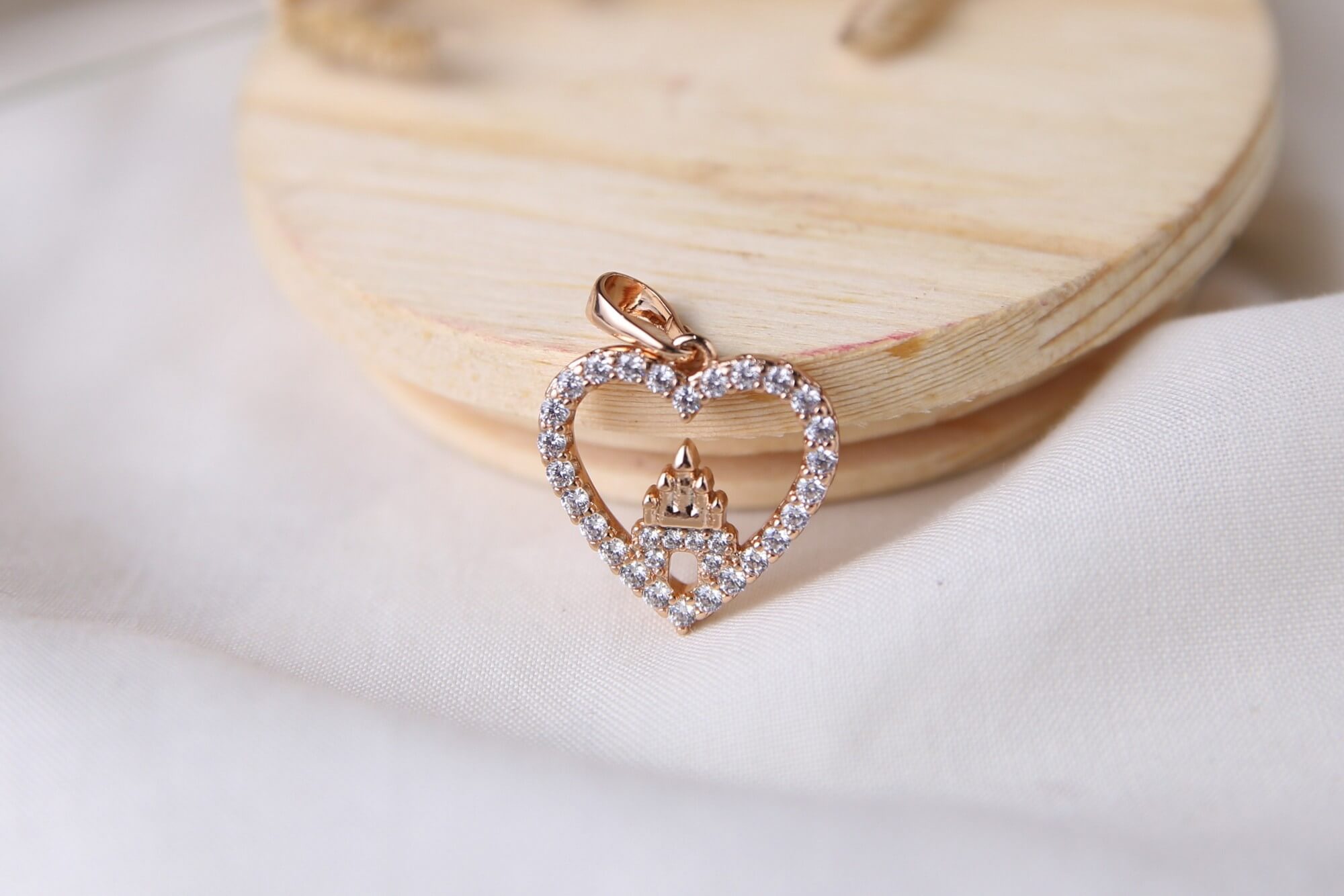 Elevate your style with this symbolic pendant. This piece features a delicate open-heart silhouette, meticulously lined with shimmering clear cubic zirconia stones for a classic, romantic sparkle. Crafted with a warm rose gold-tone finish, this pendant offers a soft, elegant glow that beautifully complements the brilliance of the stones. Whether it serves as a reminder of a happily ever after or simply adds a playful yet sophisticated element to your jewelry collection, this heart and castle pendant is a truly magical accessory.