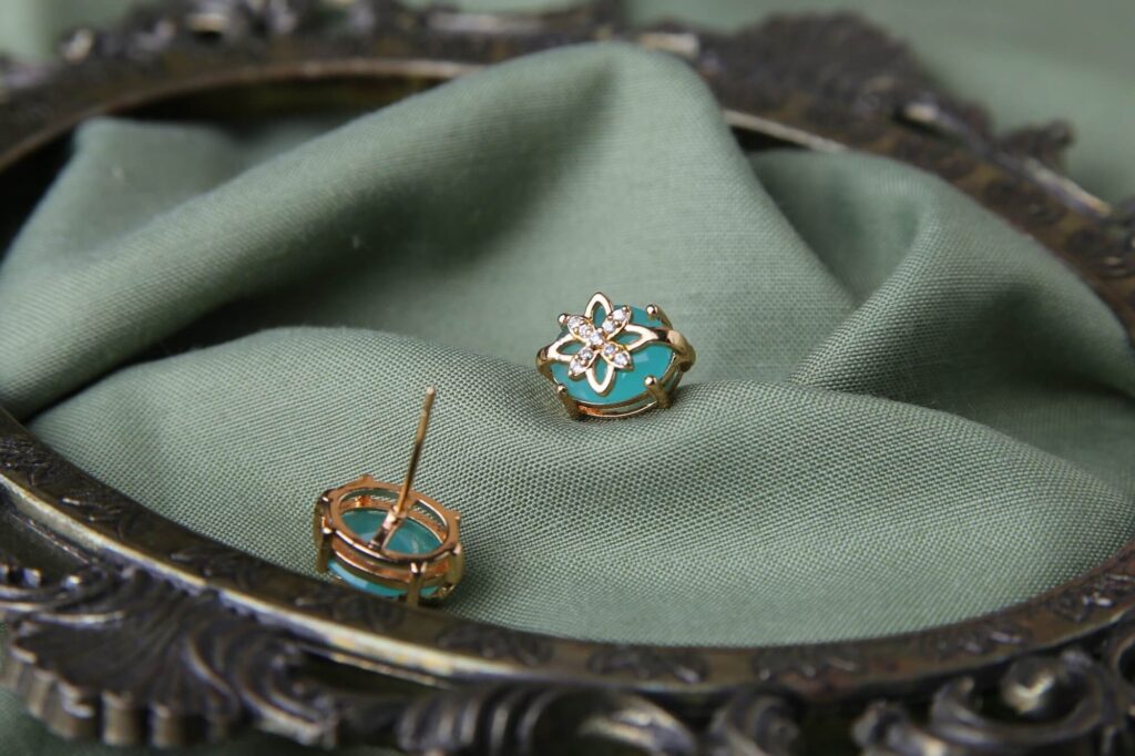 Floral Elegance Gold & Turquoise Studs