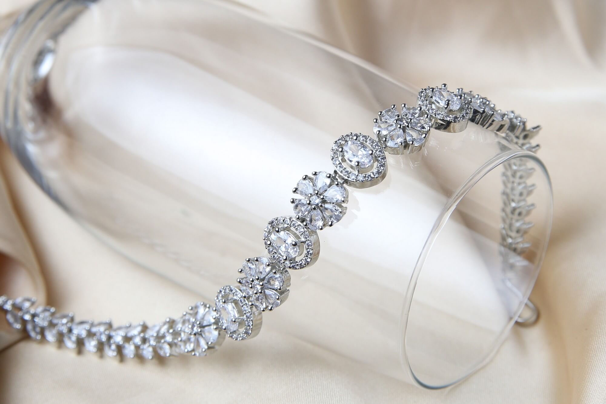 Floral Silver Crystal Bracelet