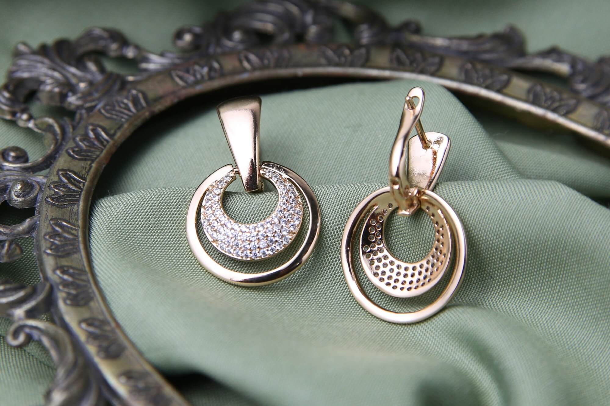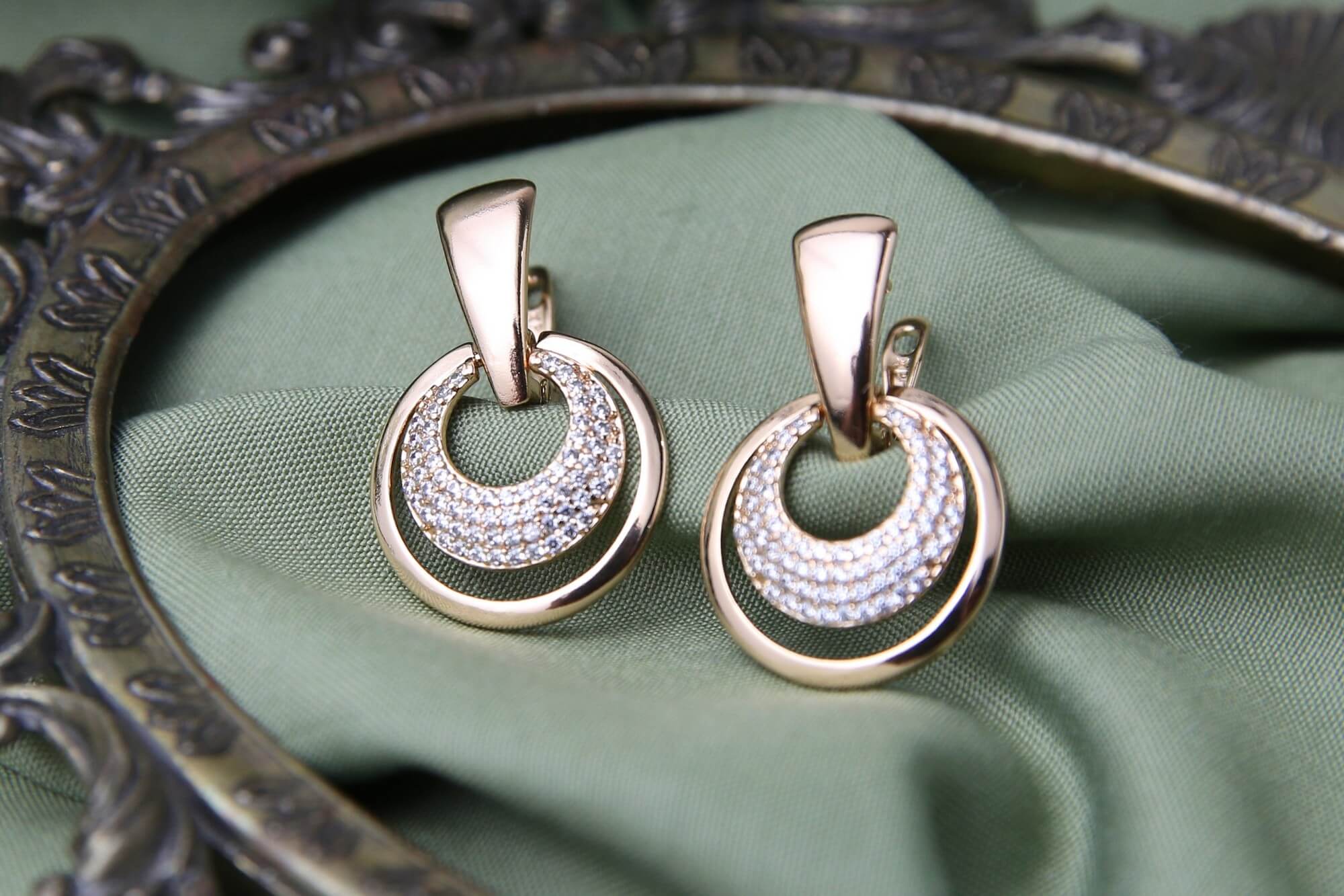 These chic drop earrings offer a modern twist on classic elegance. Each earring features a polished gold-toned hoop embracing a smaller, crescent-shaped inlay fully encrusted with dazzling clear crystals. The unique design catches the light beautifully, creating a subtle yet eye-catching sparkle. These earrings are the perfect accessory to elevate both your daytime and evening looks with a touch of contemporary glamour.