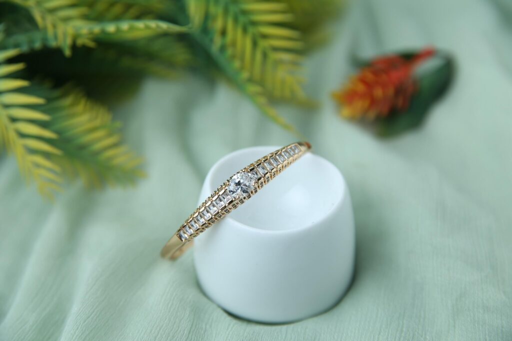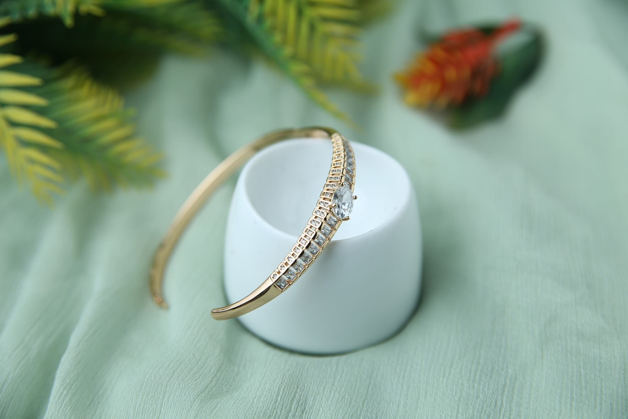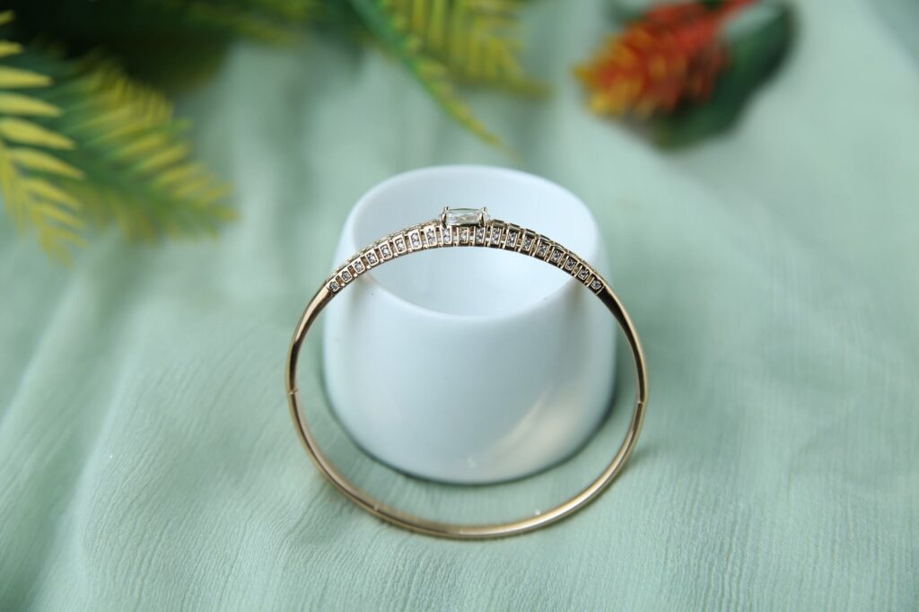 It is made with a gold-tone finish and has a row of sparkling cubic zirconia stones that add a stunning look. The bracelet is perfect for special occasions or as a daily accessory to elevate your style.