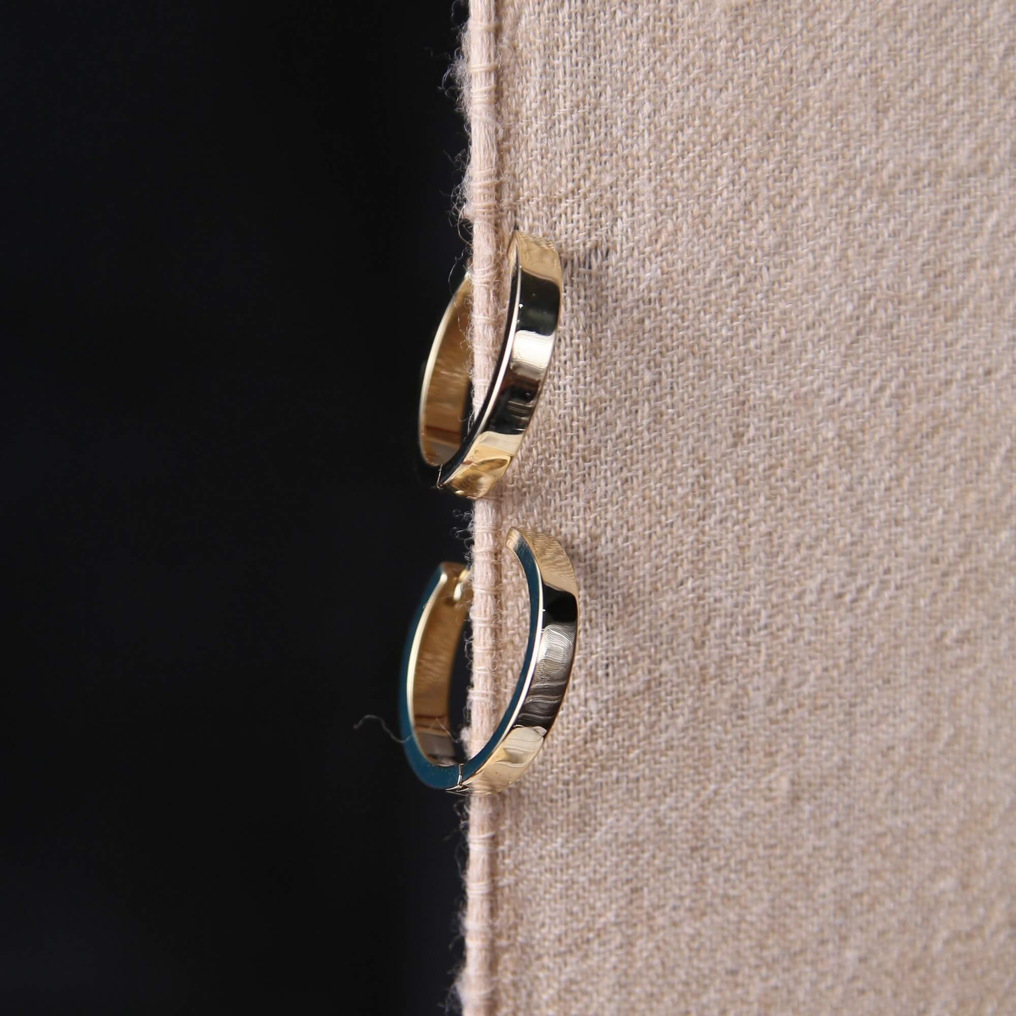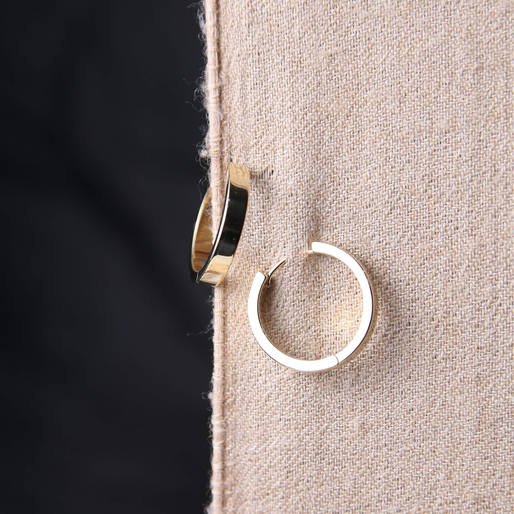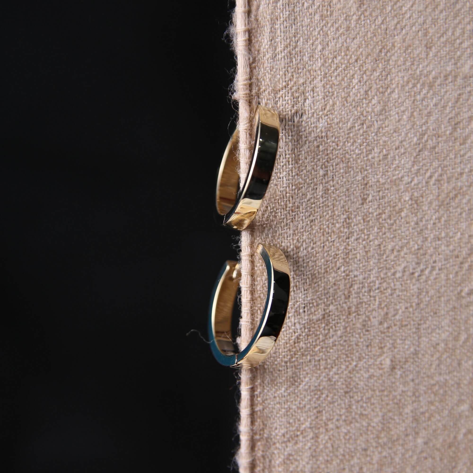 Embrace the beauty of modern simplicity with these sleek and sophisticated hoop earrings. Featuring a contemporary wide, flat and a radiant high-polish gold-tone finish, these hoops offer a clean, architectural look. The mirror-like surface is designed to reflect light with every movement, providing a bold yet refined glow. Lightweight and timeless, these versatile earrings are the perfect everyday staple, adding a touch of effortless cool to a casual outfit or a polished finishing touch to professional attire.