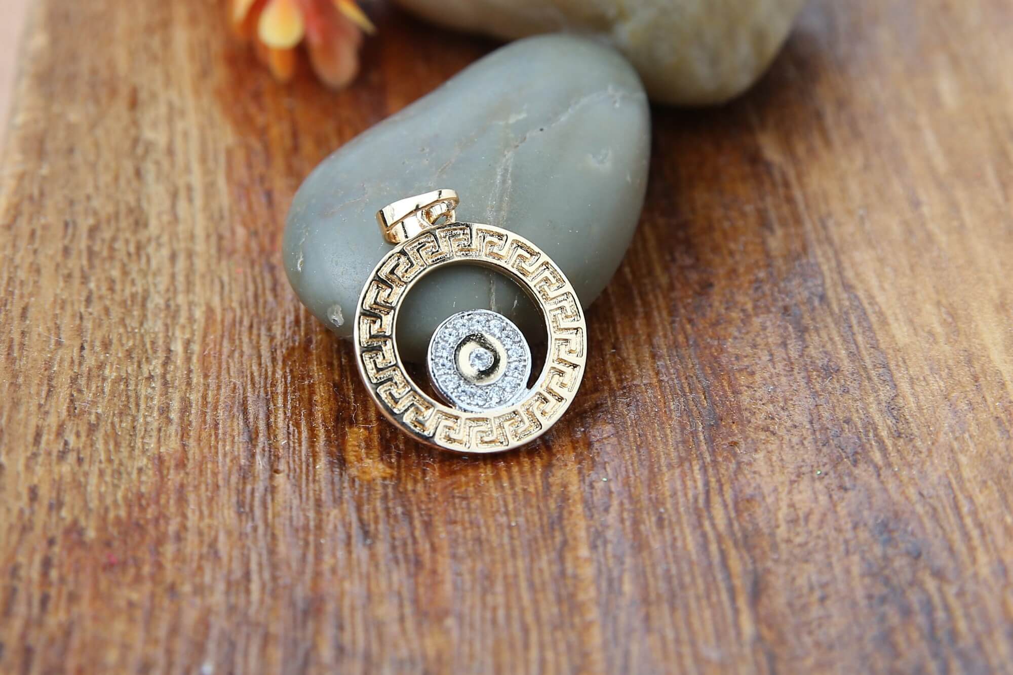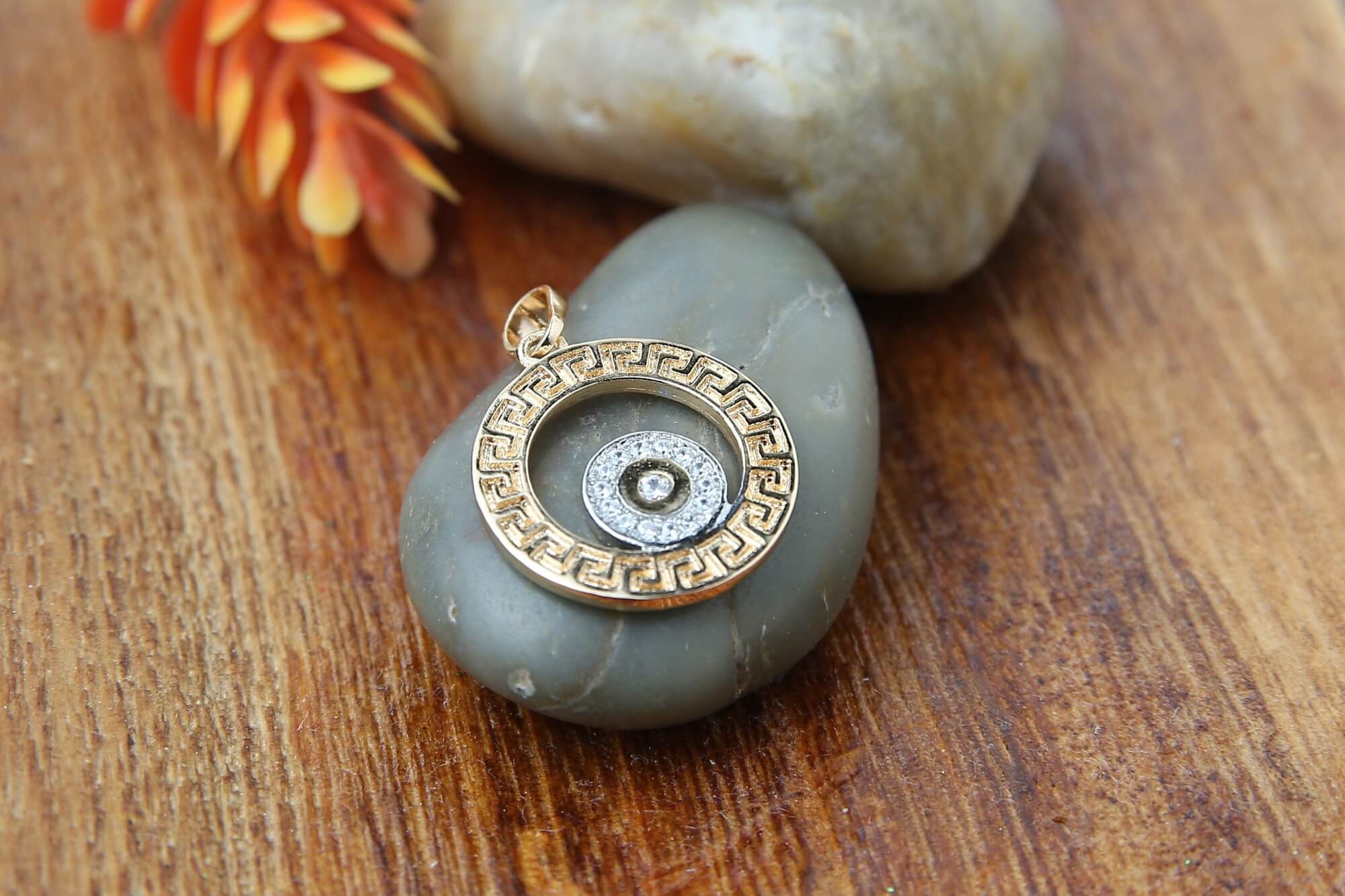 This exquisite pendant features a dazzling circle of diamonds set within a golden frame, creating a captivating eye-like design. The delicate detailing of the gold frame adds a touch of elegance, making it a truly beautiful and eye-catching piece of jewelry.