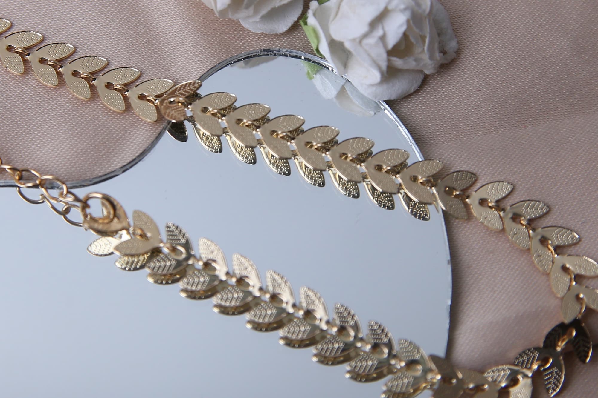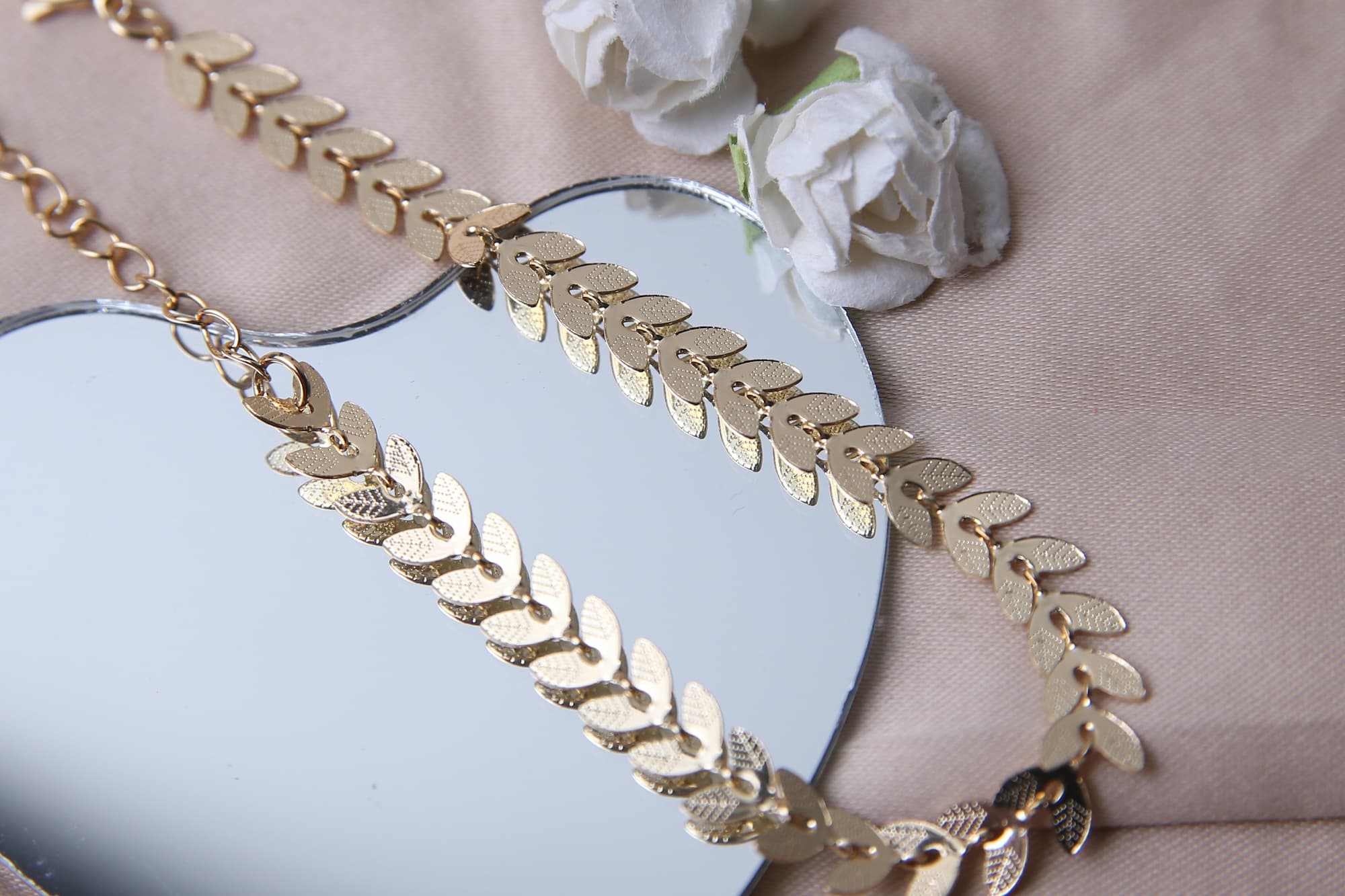 A chain of linked anklet in the form of leaves adorns this dainty anklet. The metal’s gold tone lends it an exquisite and timeless appearance. The style is ideal for giving any ensemble a hint of refinement.