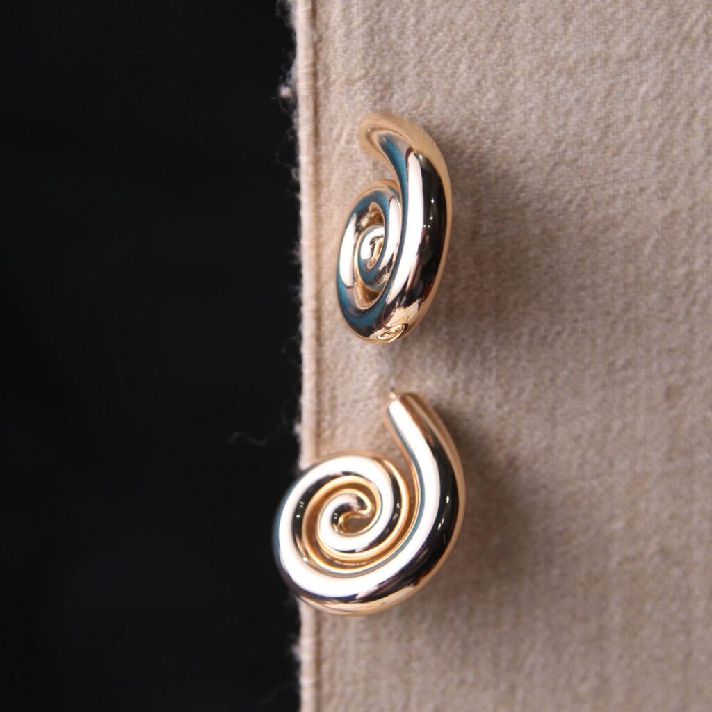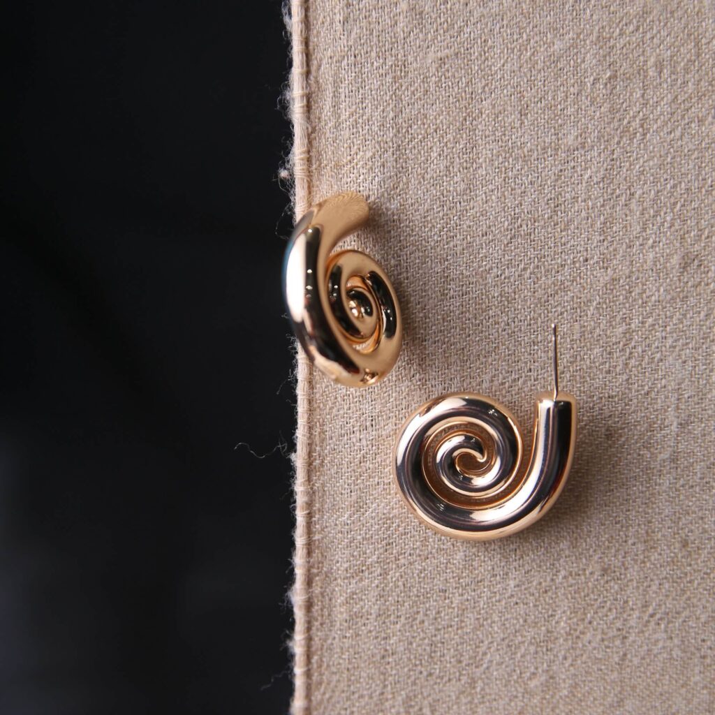 Golden Spiral Sculptural Stud Earrings