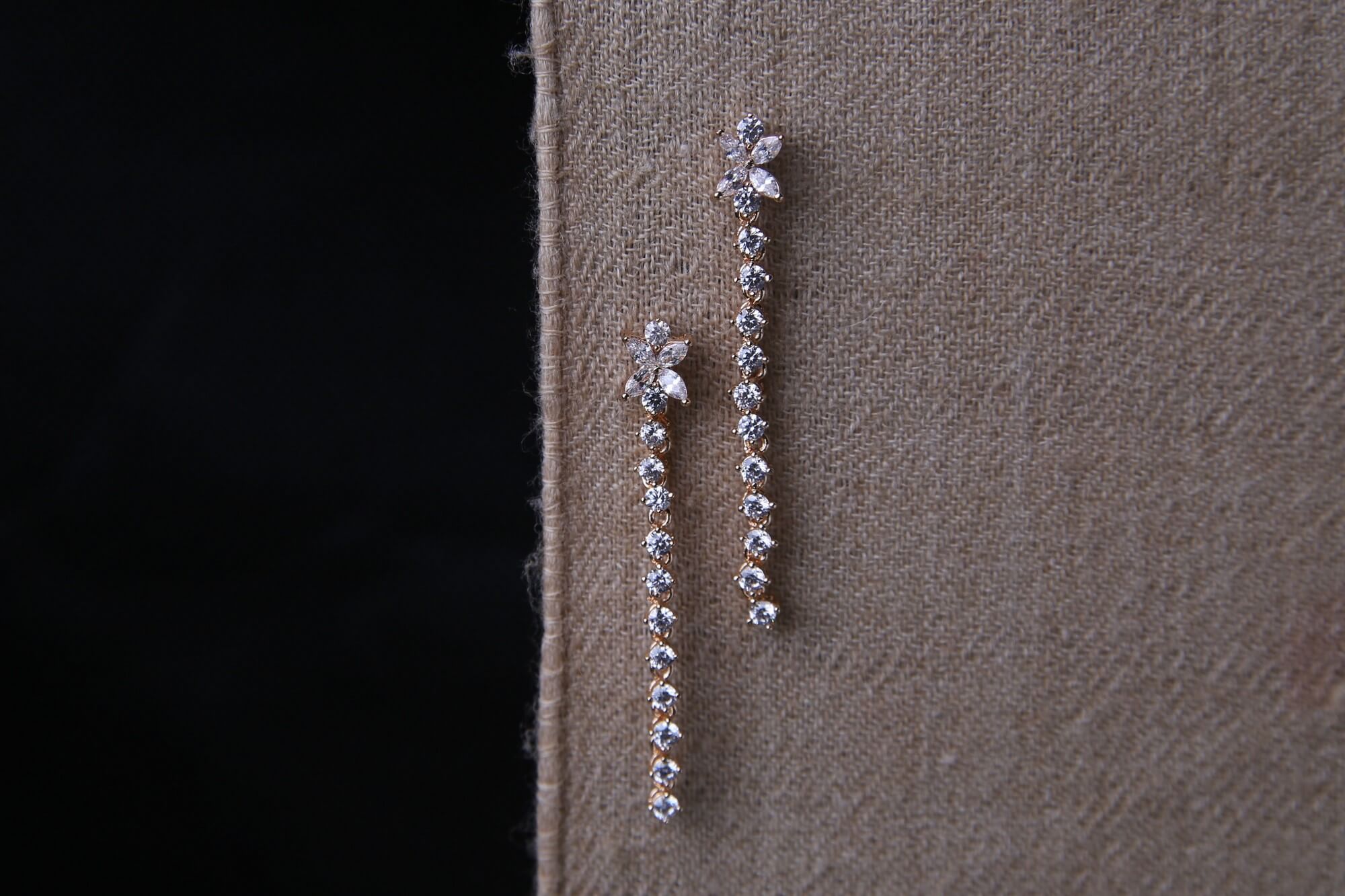 Elevate your elegance with these breathtaking floral crystal dangle earrings. Designed with sparkling cubic zirconia stones arranged in a delicate floral pattern, these earrings exude charm and sophistication. The cascading row of shimmering crystals gracefully follows the curve of the ear, creating a luxurious and refined look. Crafted with a gold-plated base, these earrings are lightweight, comfortable, and perfect for weddings, formal events, or adding a touch of glamour to your everyday style. A timeless accessory that radiates beauty and grace.
