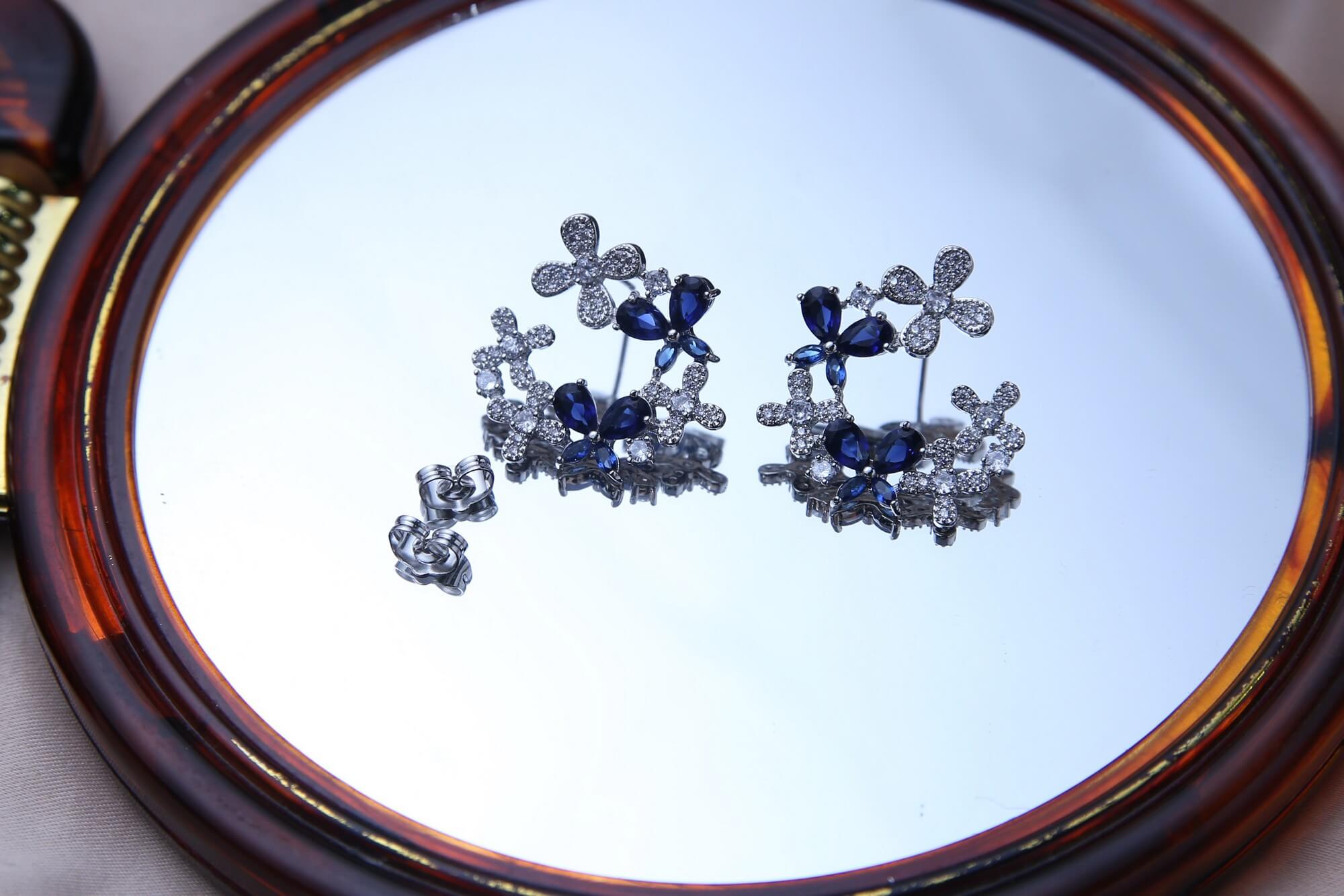 Elevate your look with our Midnight Blossom Statement Earrings. These magnificent pieces have a captivating design that nicely combines rich blue gemstones and sparkling crystals, evoking images of a floral garden under a starlit sky. These earrings, designed with precision and delicate craftsmanship, are ideal for adding a touch of elegance to any outfit. Their distinctive design and brilliant polish make them appropriate for both special occasions and evening wear. The Midnight Blossom Statement Earrings are lightweight and simple to wear, yet they will make you stand out.
