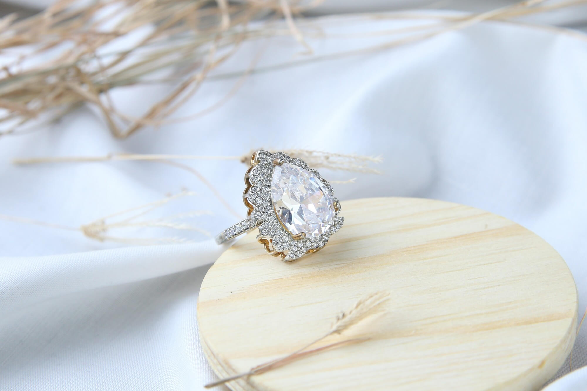 Pear-Shaped Diamond Halo Ring