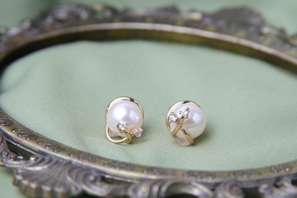 These charming stud earrings offer a delicate touch of elegance. Each earring features a luminous, round faux pearl cradled by a graceful, swirling gold-toned setting accented with tiny, sparkling clear crystals. The minimalist design beautifully highlights the pearl’s natural beauty, making these earrings a versatile accessory for both everyday wear and special occasions.