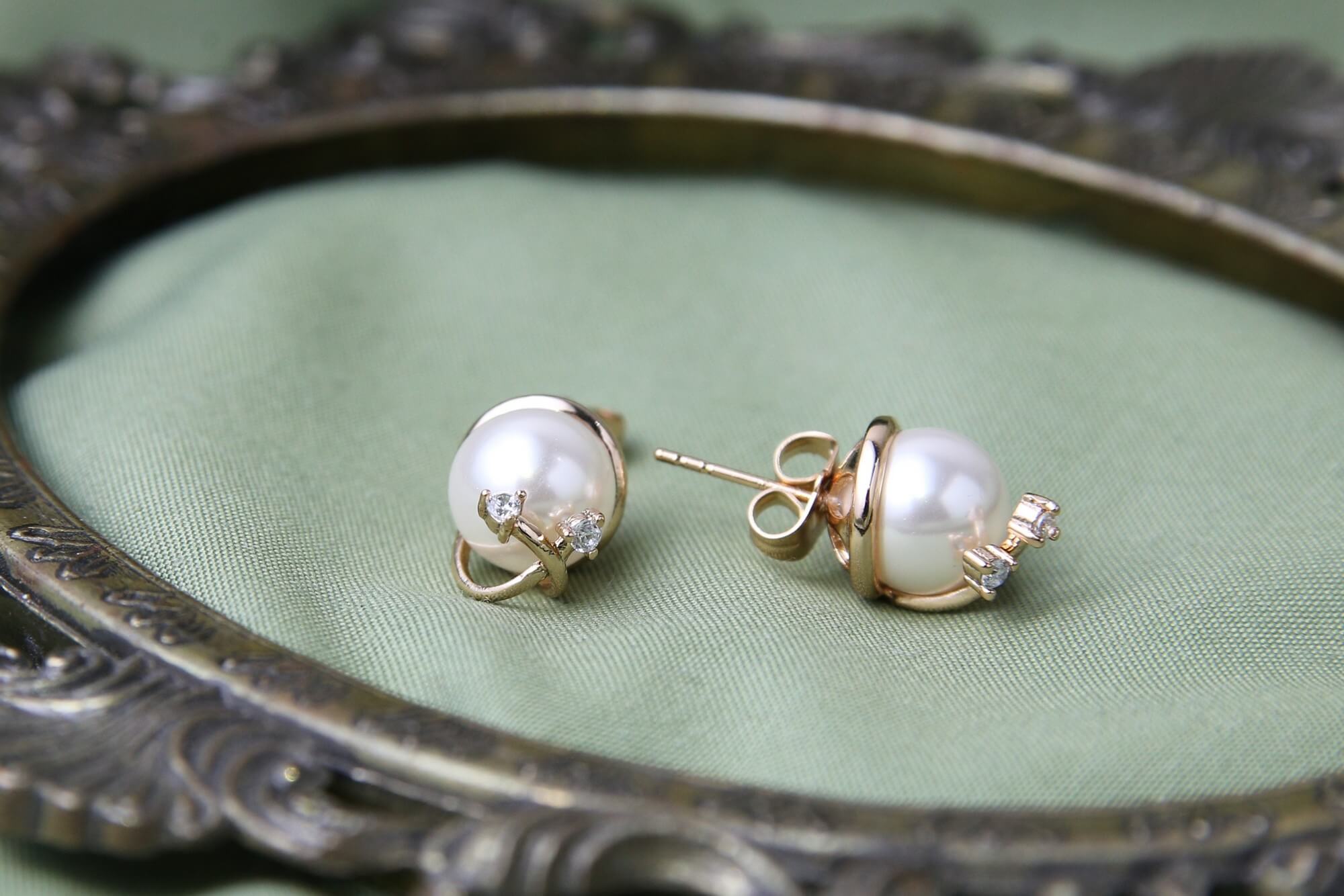 These charming stud earrings offer a delicate touch of elegance. Each earring features a luminous, round faux pearl cradled by a graceful, swirling gold-toned setting accented with tiny, sparkling clear crystals. The minimalist design beautifully highlights the pearl’s natural beauty, making these earrings a versatile accessory for both everyday wear and special occasions.