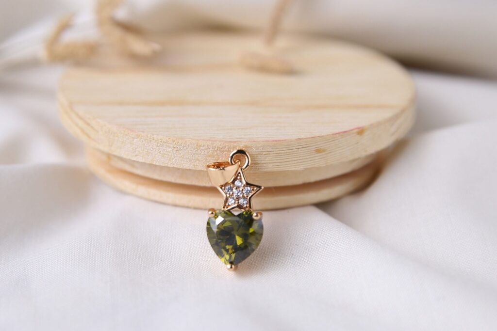 This enchanting pendant blends romantic symbolism with celestial charm, featuring a warm rose gold-tone finish. At its center lies a vibrant, heart-cut emerald green stone, known for its outstanding sparkle and deep association with love and new beginnings. Perched gracefully above the heart is a shimmering star motif, meticulously pave-set with brilliant clear cubic zirconia stones to catch the light from every angle. Whether chosen as a meaningful gift or a signature addition to your own collection, this piece offers a sophisticated touch of glamour to any neckline.