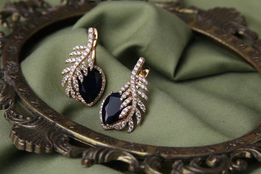 Elevate your style with these regal plum drop earrings, a captivating blend of deep color and dazzling sparkle. The rich, dark plum stones, cut in a classic pear shape, command attention while exuding an air of sophisticated elegance. Embraced by a delicate, feather-like setting of shimmering diamonds, the earrings catch the light with every turn, adding a touch of brilliance. The warm, golden tone of the metal complements the plum hue beautifully, creating a luxurious and harmonious piece. Whether gracing a formal event or adding a touch of glamour to your evening ensemble, these earrings are sure to elevate your look with their timeless design and captivating allure.