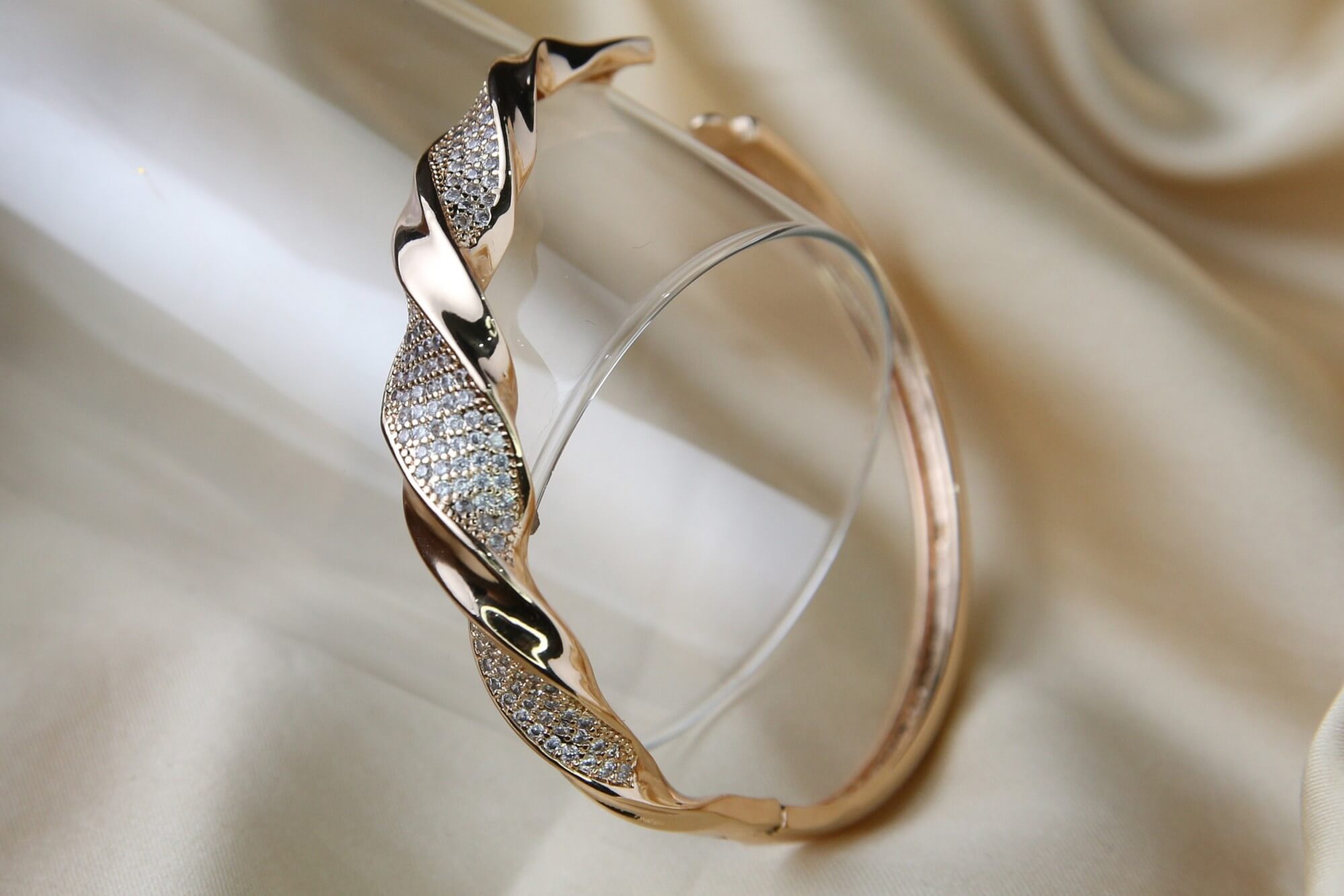 Rose Gold Bangle with Diamond Pave
