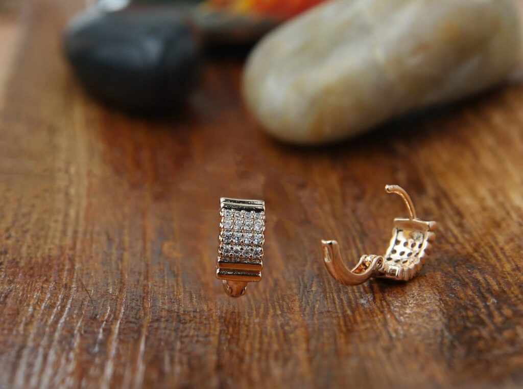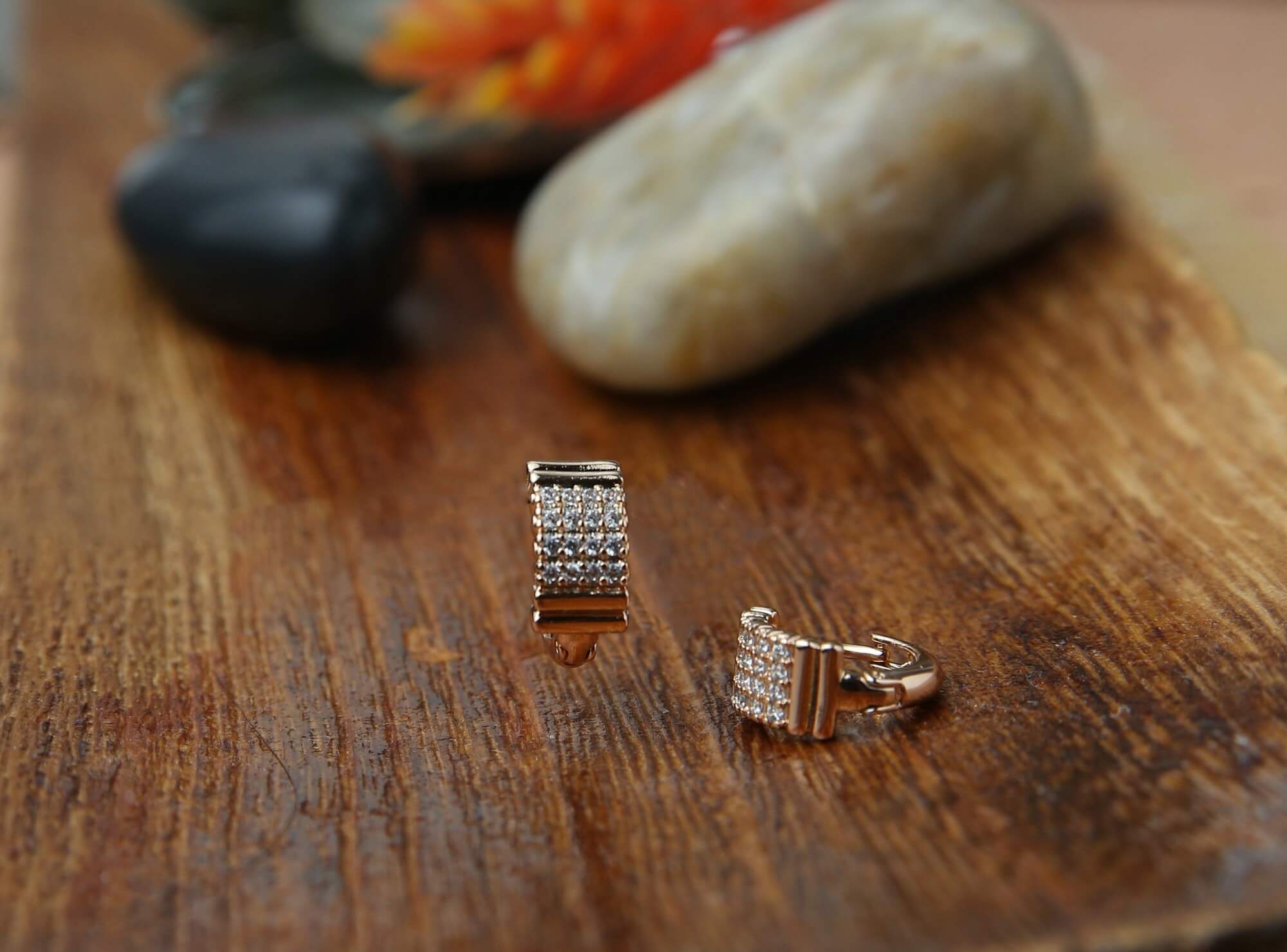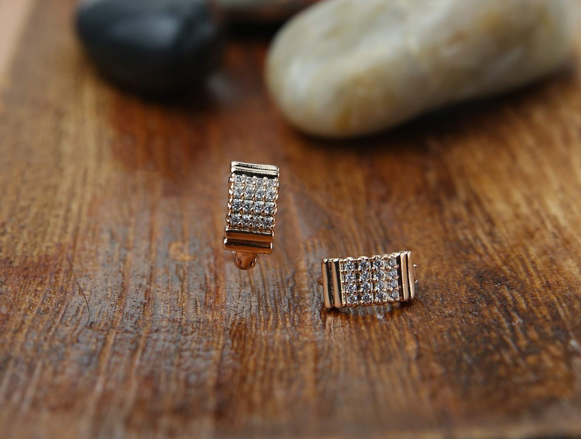 Enhance your look with these stunning rose gold clip-on earrings with sparkling crystal accents. These exquisite earrings have a unique blend of refinement and modern flair, making them ideal for any occasion. The clip-on style is designed for comfort and simplicity of wear, providing a secure fit without the need for piercings. The dazzling rose gold matches the glittering crystals, offering a bit of glitz to your ensemble. These earrings are a must-have addition to your jewelry collection, whether you’re dressing up for a special occasion or adding a bit of glam to your everyday look