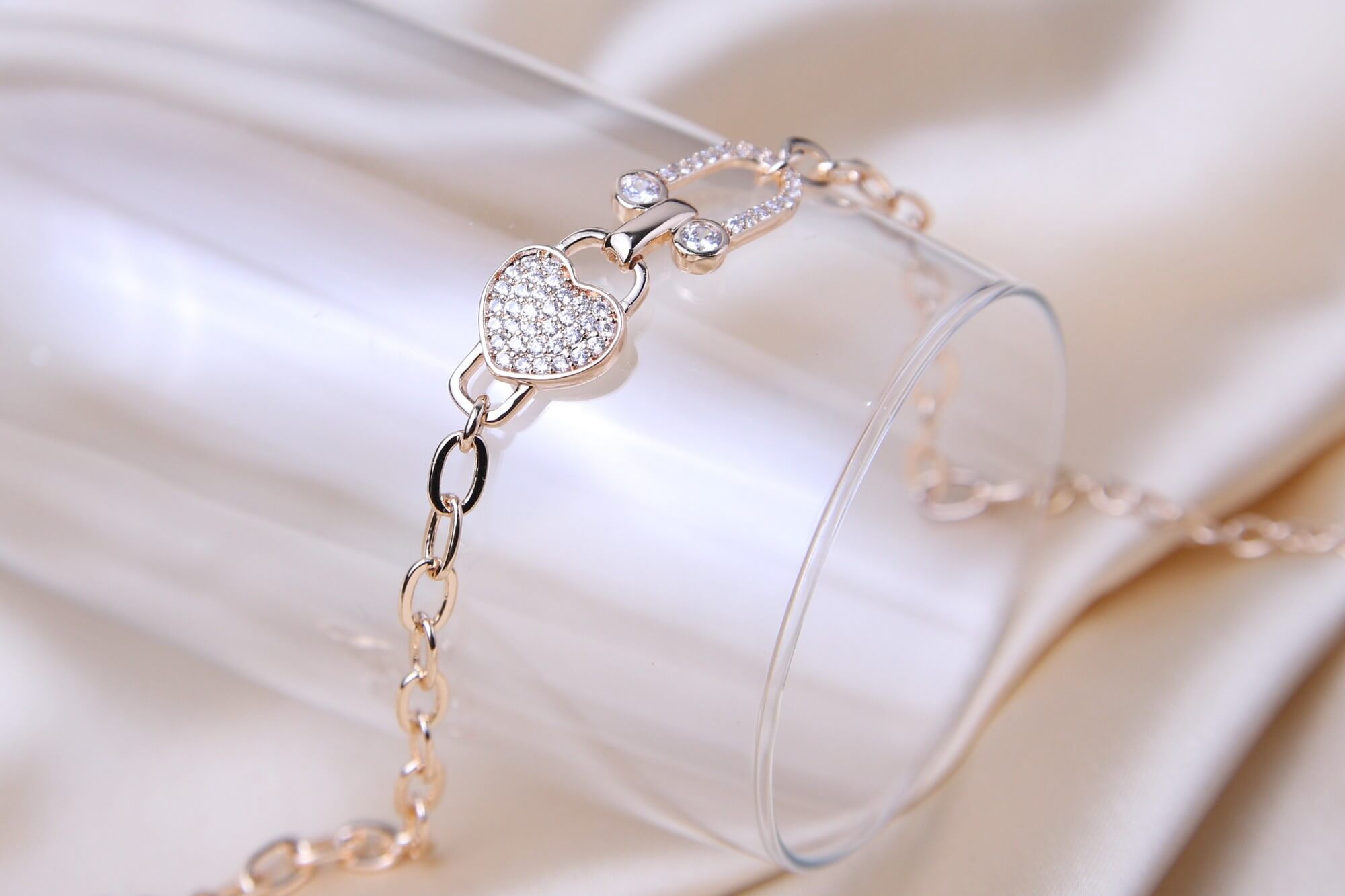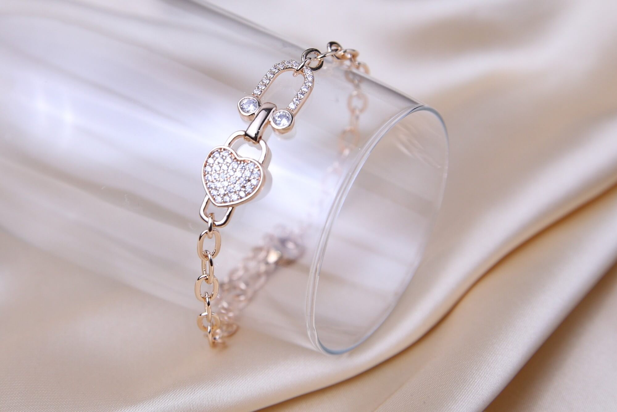 Rose Gold Heart Cubic Zirconia Bracelet