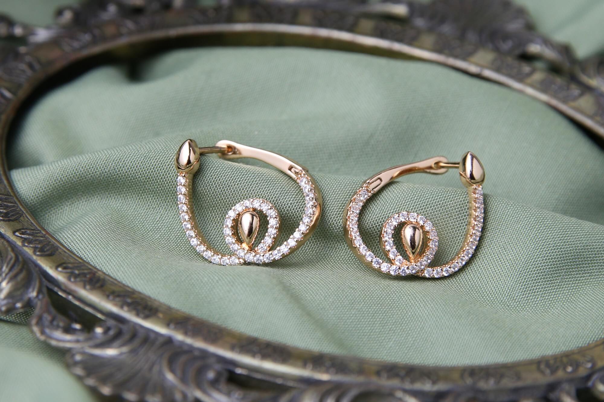 Rose Gold Swirl Crystal Hoop Earrings