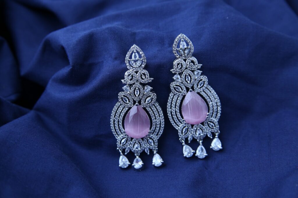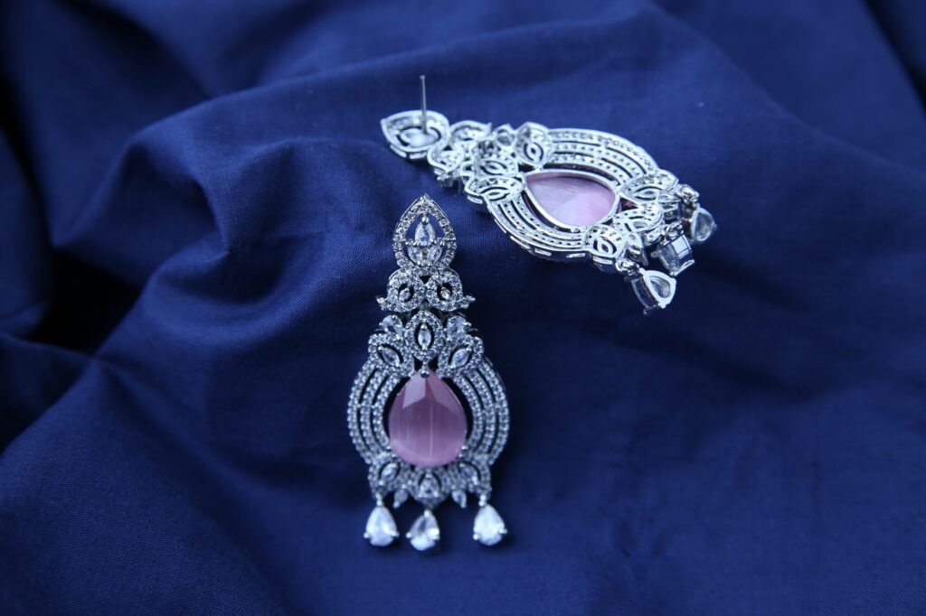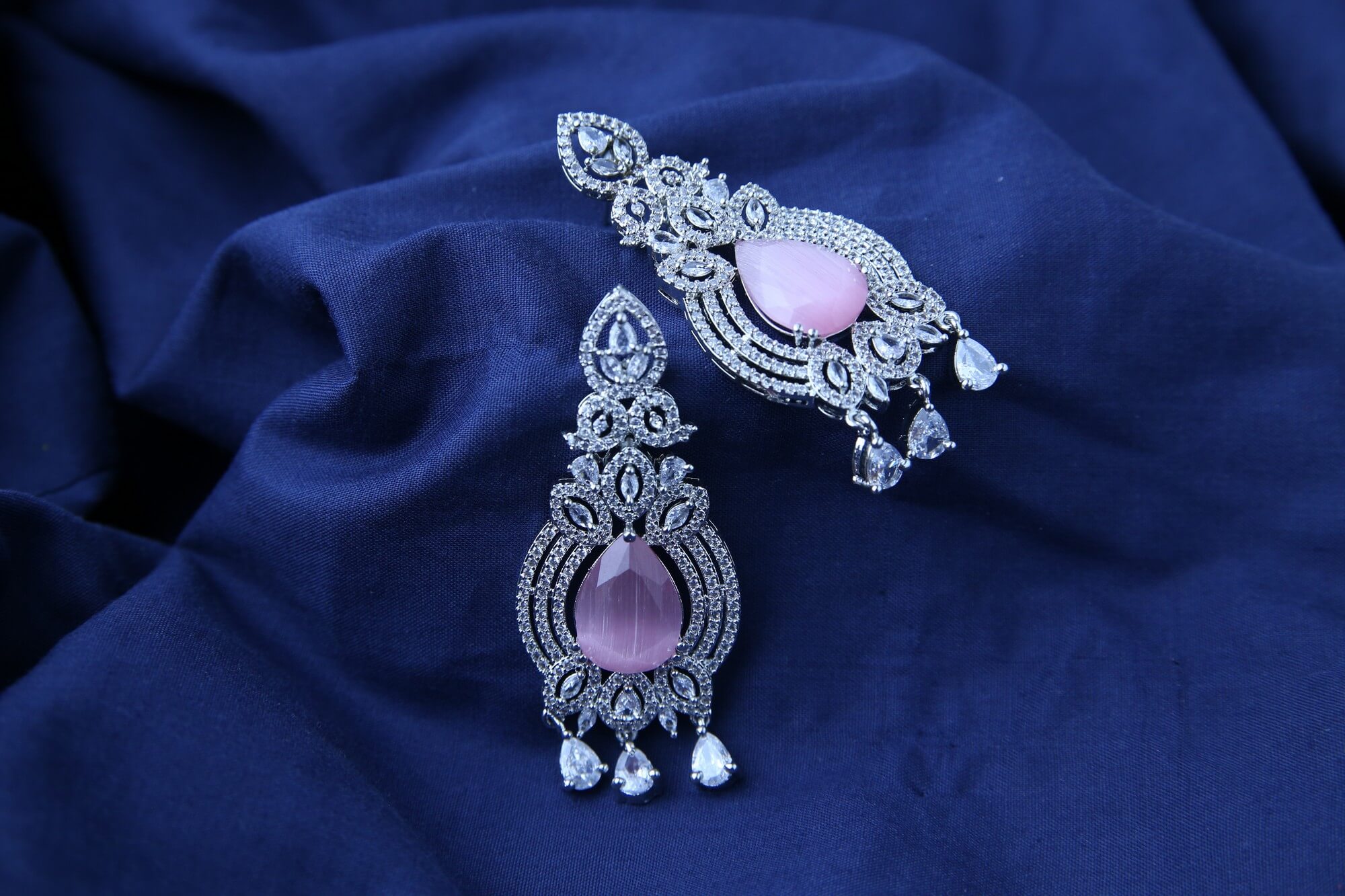 Capture the soft glow of twilight with these Rosewater Radiance Earrings. Delicate tracery of shimmering crystals creates an elegant, elongated silhouette, while captivating, rose-toned stones add a touch of subtle color and captivating depth. The cascading design dangles gracefully, catching the light and adding a touch of movement to your every turn. Perfect for special occasions, these earrings effortlessly blend classic glamour with modern sophistication.