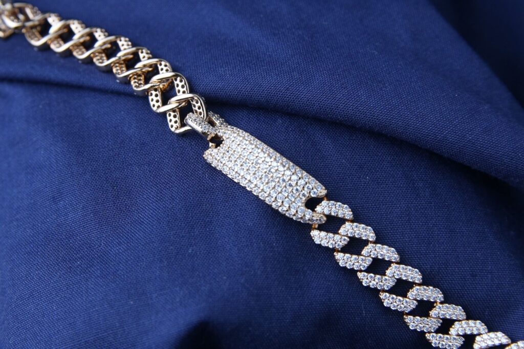 This masterpiece features a classic Cuban link design, fully encrusted with shimmering high-quality stones that reflect light beautifully. The lavish gold finish adds a regal touch, making it the perfect accessory for those who appreciate elegance and power. Whether worn for special occasions or as a standout piece in your collection, this bracelet exudes confidence and prestige.