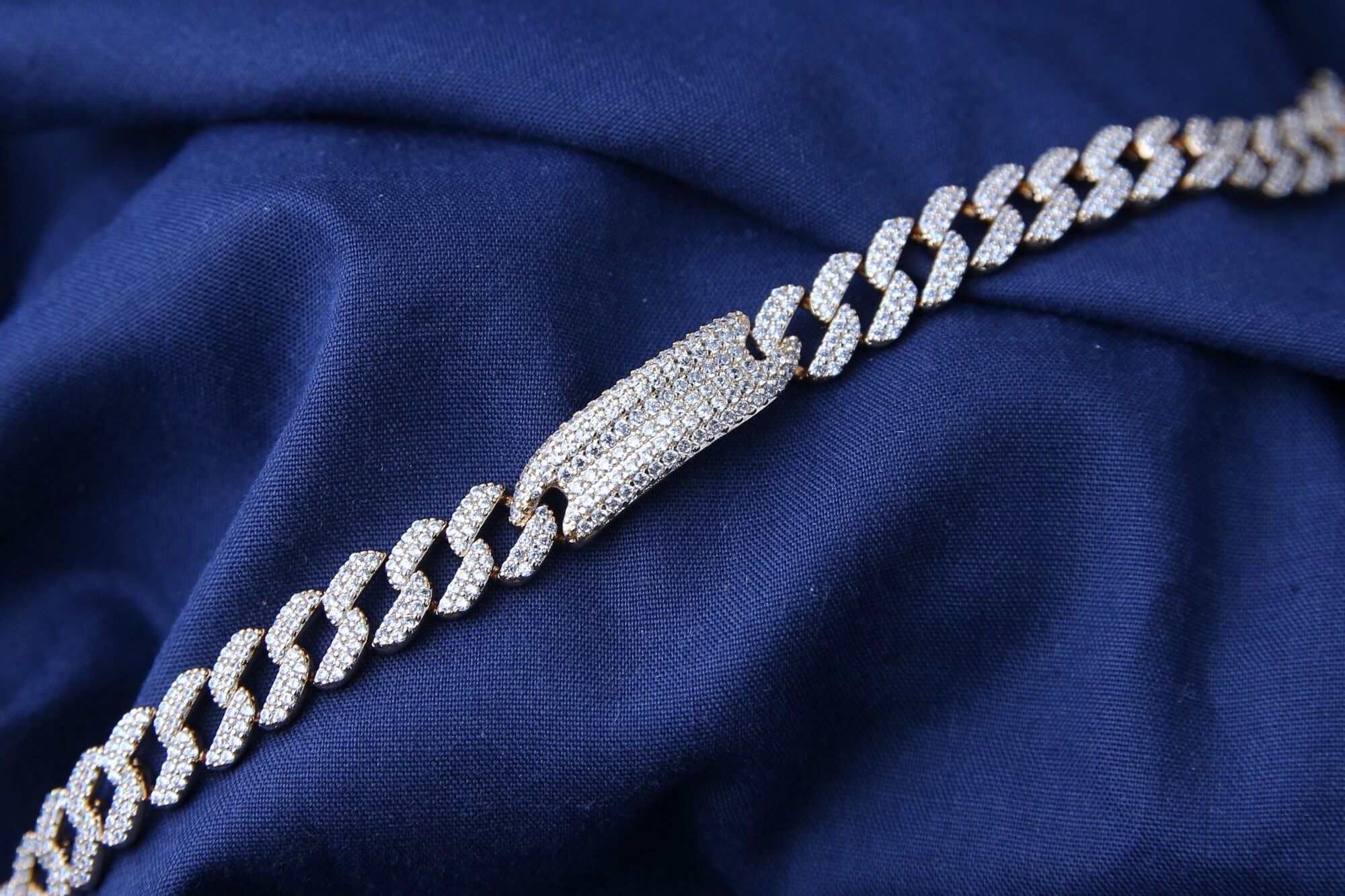 This masterpiece features a classic Cuban link design, fully encrusted with shimmering high-quality stones that reflect light beautifully. The lavish gold finish adds a regal touch, making it the perfect accessory for those who appreciate elegance and power. Whether worn for special occasions or as a standout piece in your collection, this bracelet exudes confidence and prestige.
